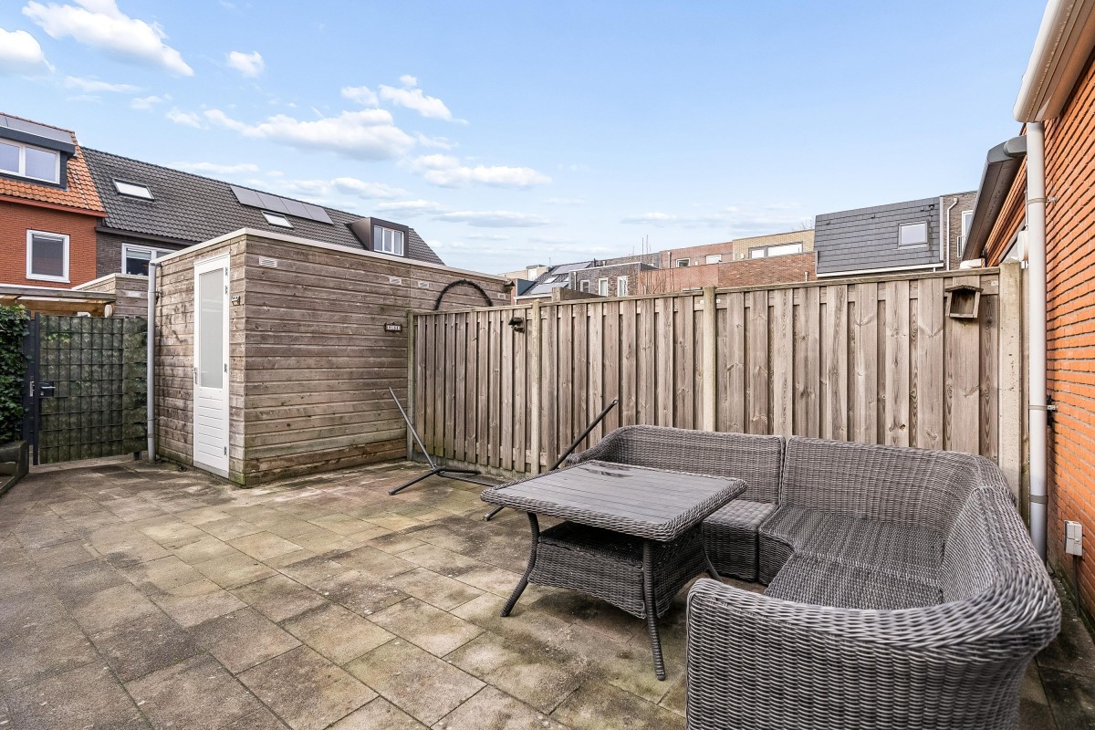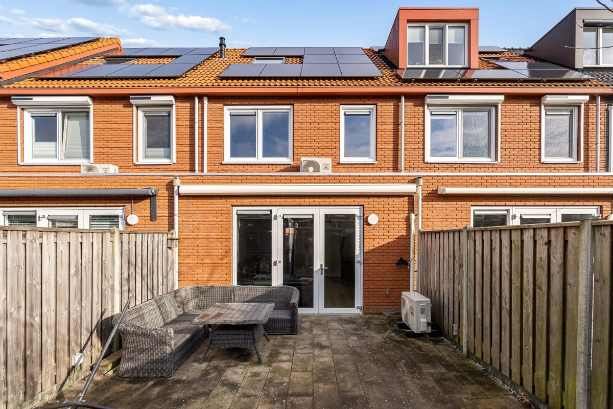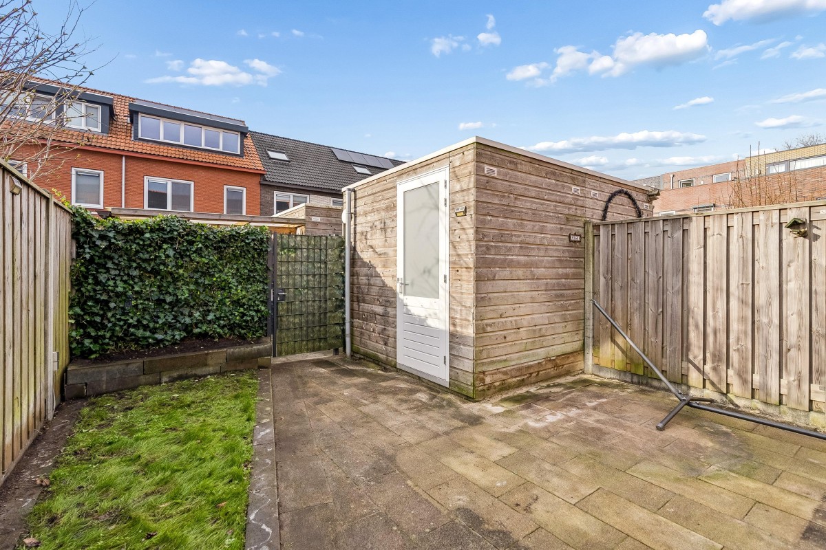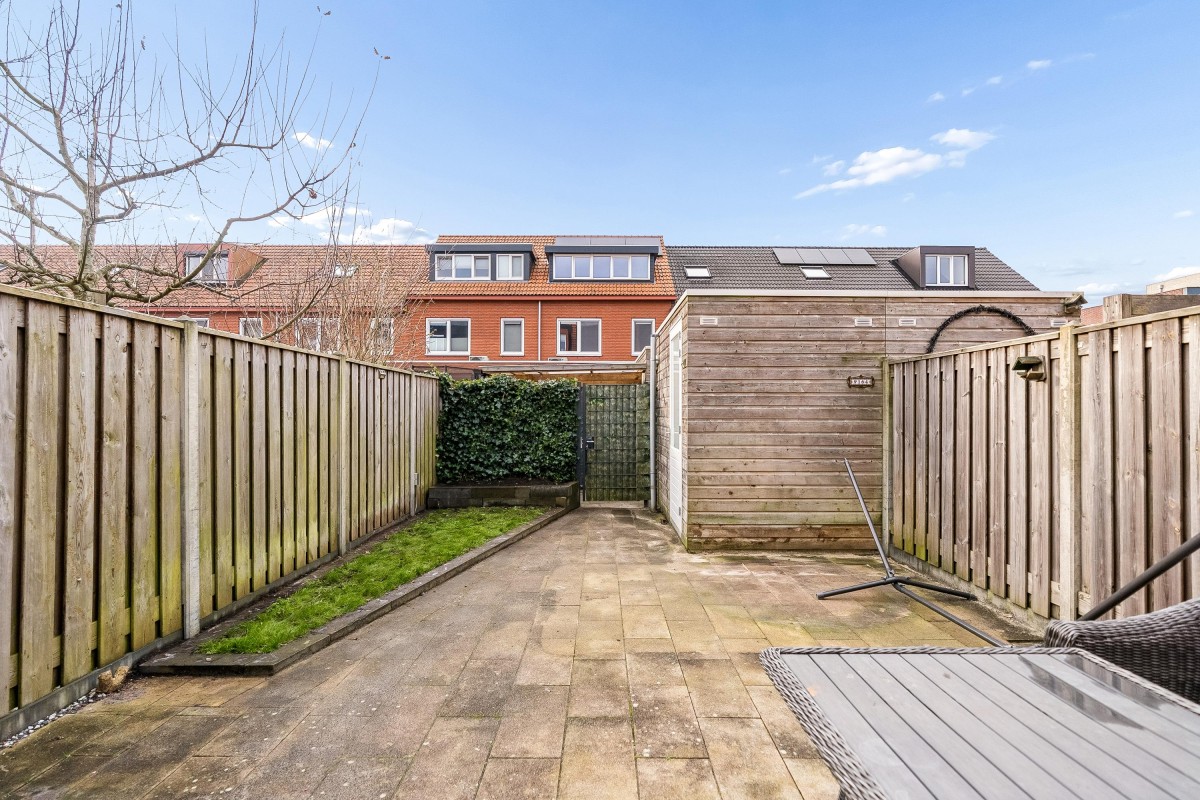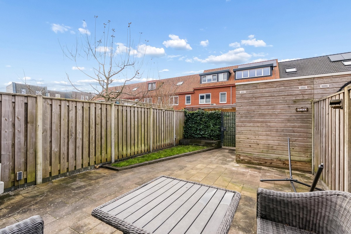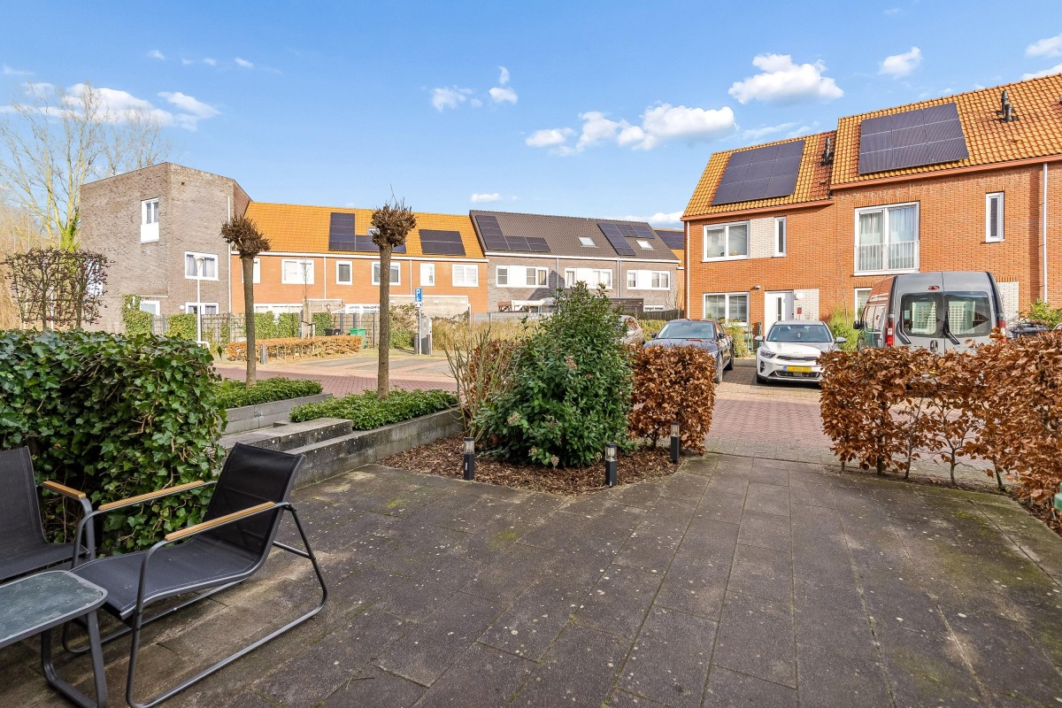 De aangelegde achtertuin op het zuidwesten is volledig bestraat en beschikt over een berging en een achterom. De voortuin is ook lekker ruim, waardoor er voldoende ruimte is voor een gezellig terras.