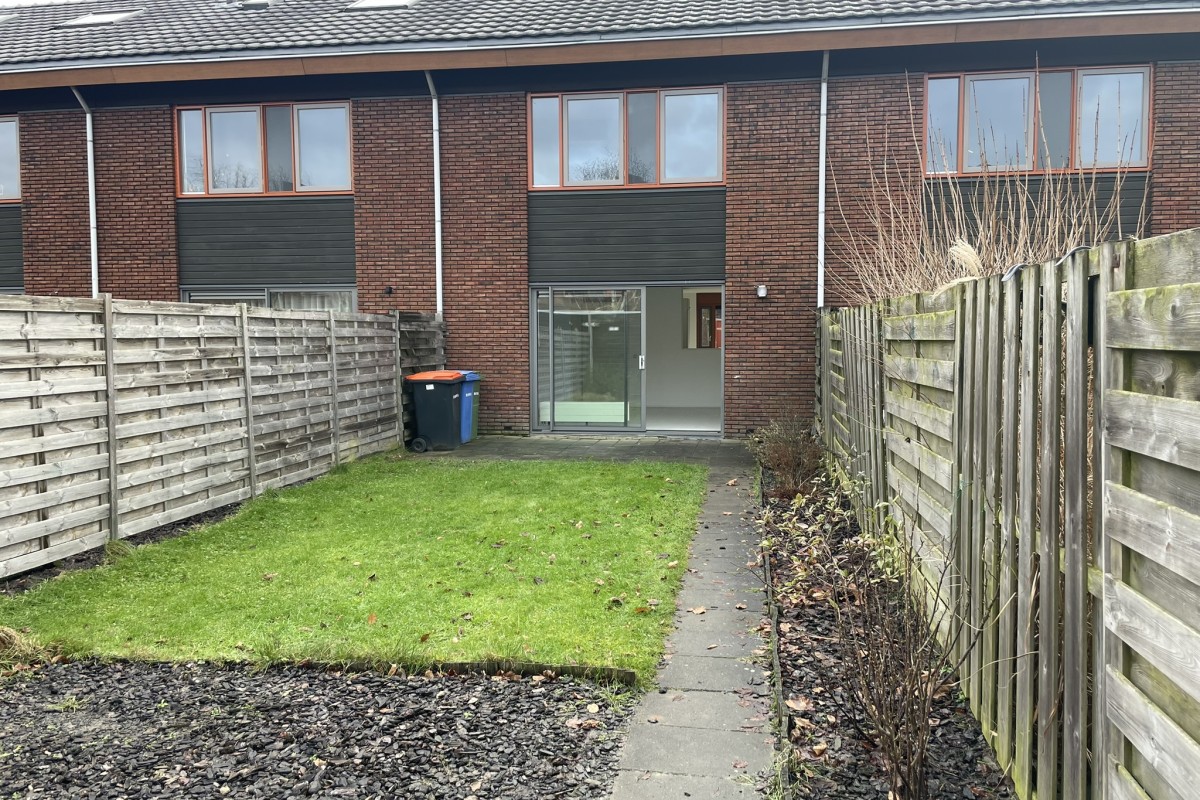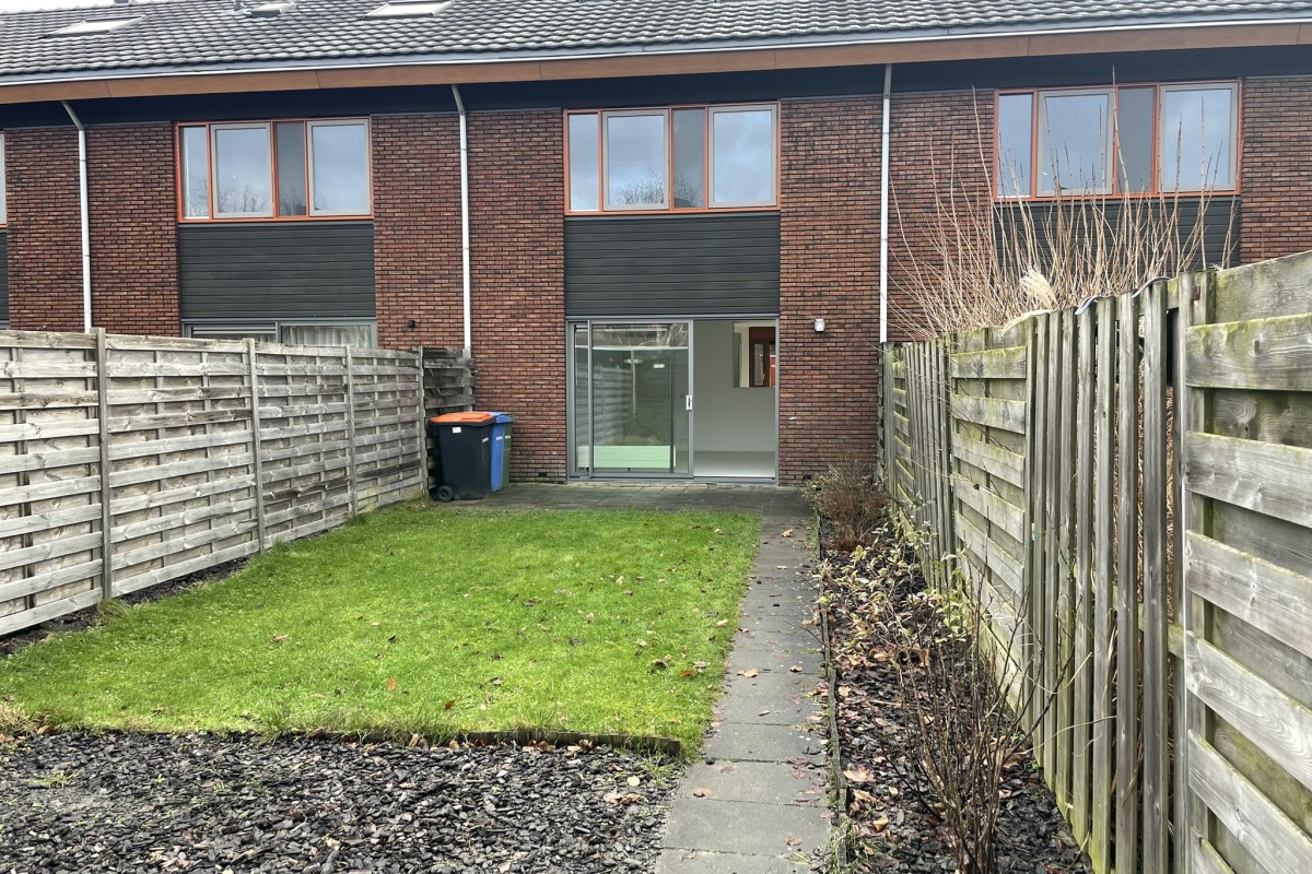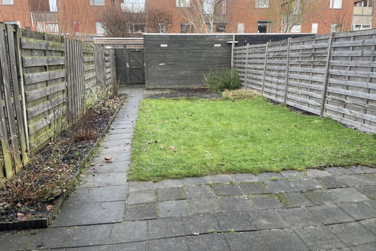 De achtertuin van ca 14 meter diep op het Westen is voorzien van een berging en achterom.