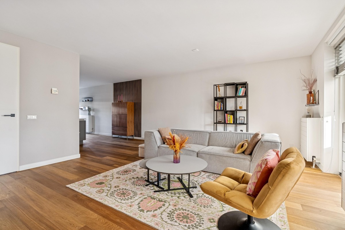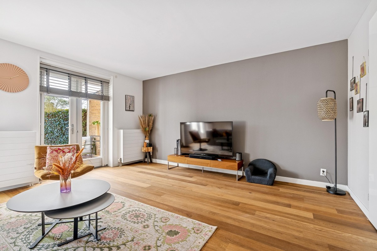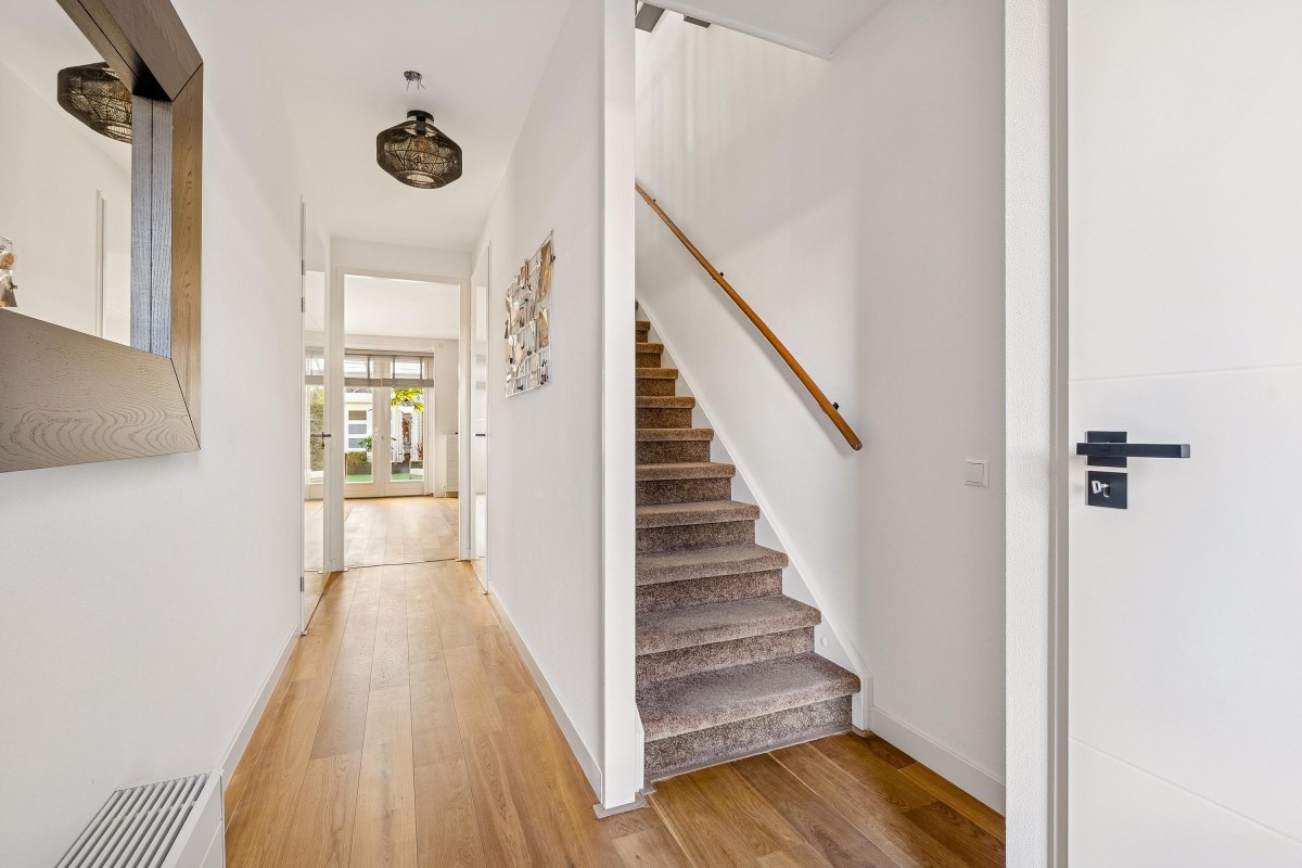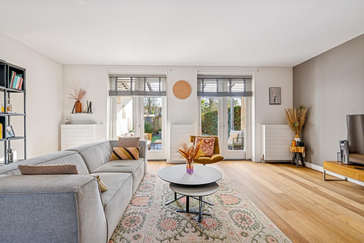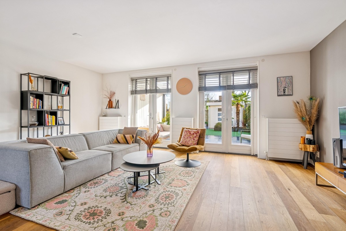 De gehele begane grond is voorzien van een mooie houten vloer en strak gestuukte wanden, wat zorgt voor een moderne en warme uitstraling.