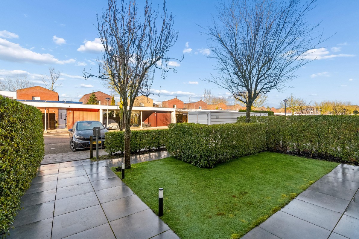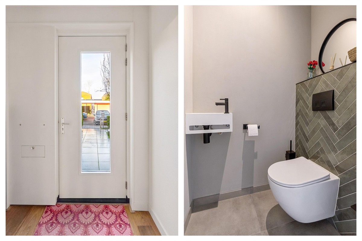Een nette voortuin met (fietsen)berging biedt de entree naar de woning. De hal geeft toegang tot de meterkast (glasvezel), een praktische bergkast en een toilet met fontein. Vanuit de hal kom je in de tuingerichte, sfeervolle woonkamer met openslaande deuren naar de zonnige achtertuin.