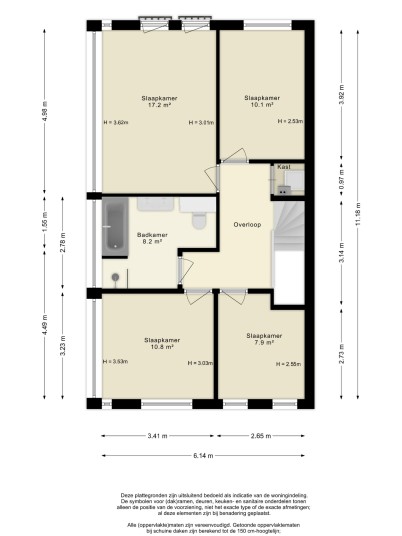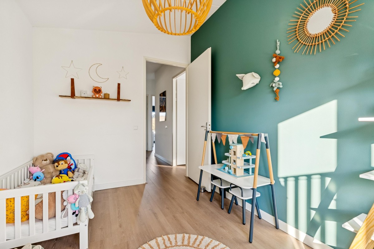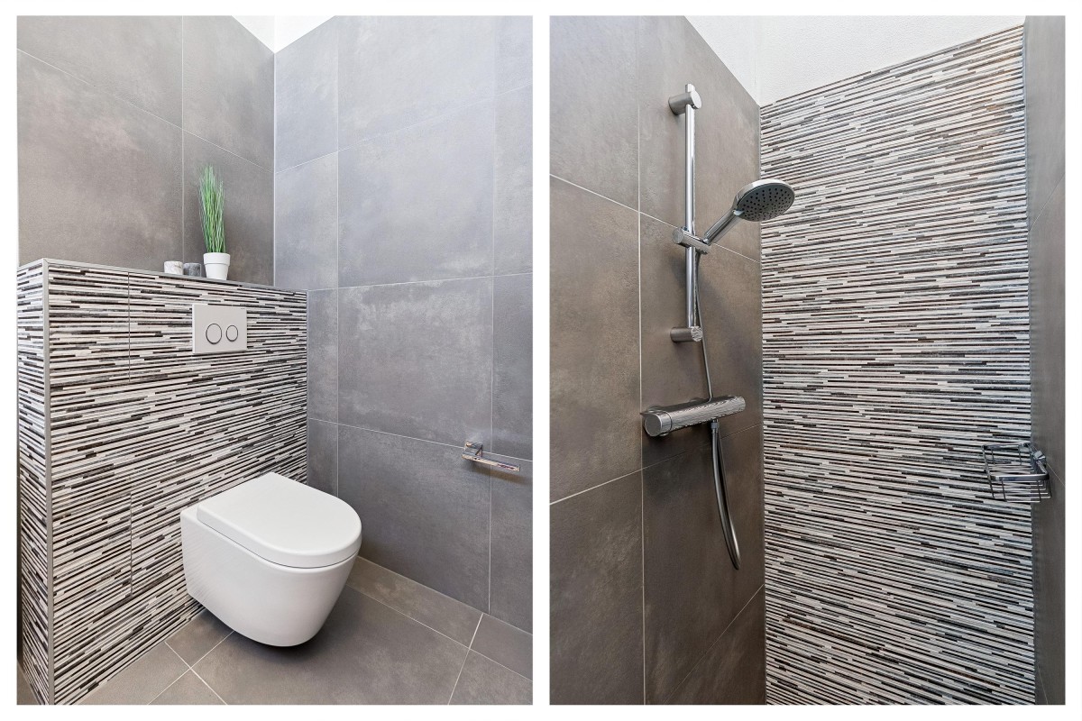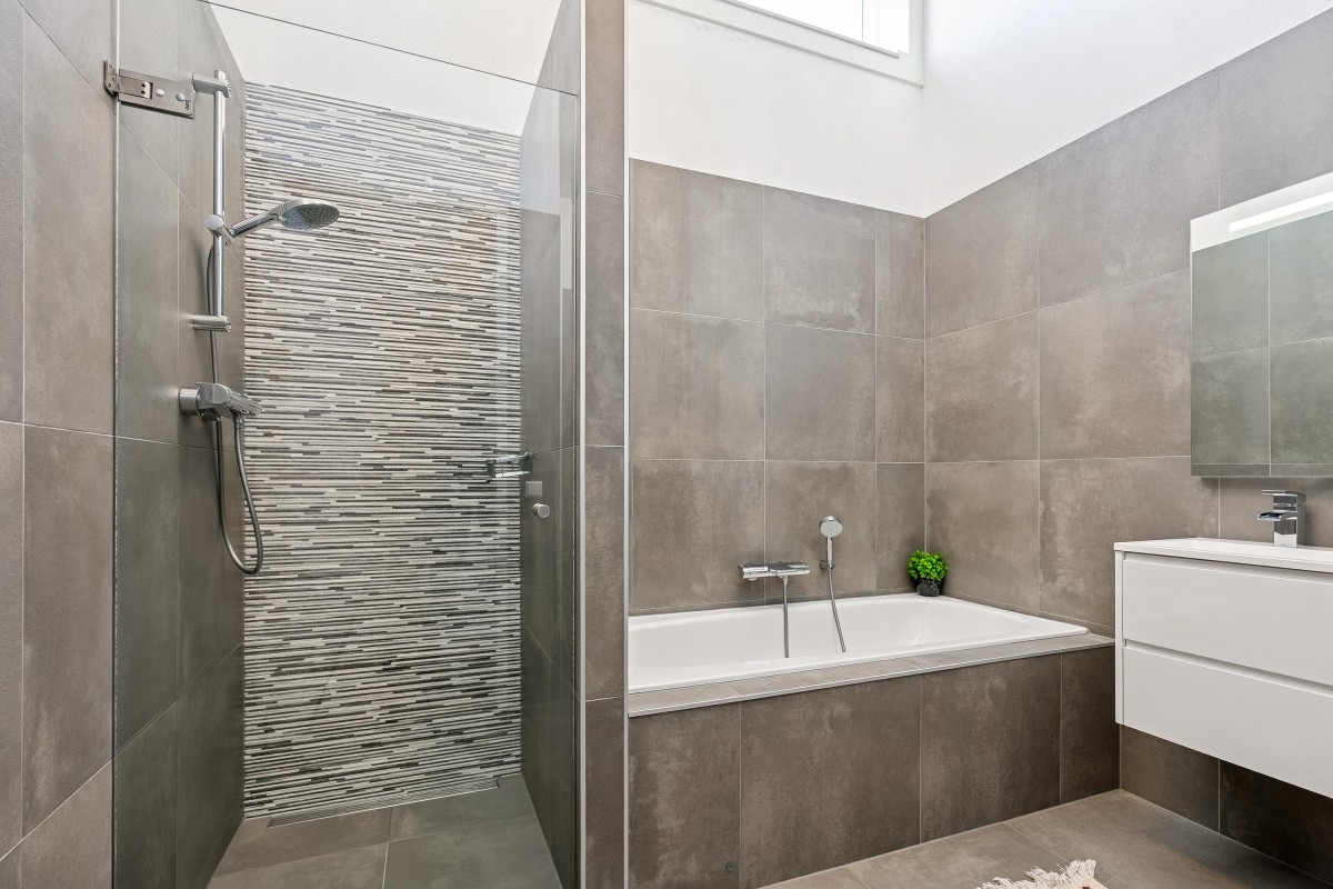 Overloop met vier prachtige slaapkamers. Dankzij het naar boven oplopende plafond voelt de verdieping zeer ruimtelijk aan en is perfect ingedeeld. De lichte badkamer heeft hetzelfde effect en is uitgerust met een ligbad, douchecabine, wastafelmeubel, toilet en nette betegeling. Alle kamers zijn voorzien van lange ramen die veel licht binnenlaten, wat zorgt voor een prachtig uitzicht aan de achterzijde van de woning door de gunstige ligging.
