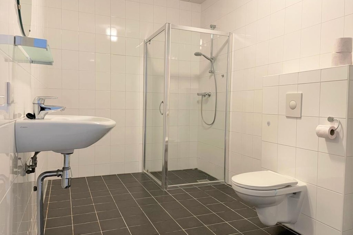 De halfopen keuken is voorzien van inbouwapparatuur. De badkamer is voorzien van een douchecabine toilet en wastafel.