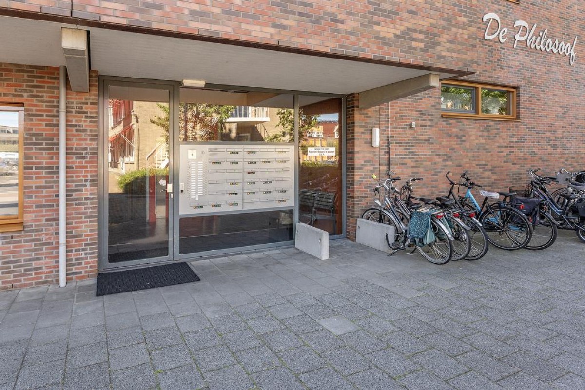 Het appartement is gelegen de eerste verdieping van het luxe appartementencomplex "De Philosoof" en biedt een mooi zicht op de tuin en de groene Philosofenallee. Het fraai vormgegeven en goed onderhouden appartementencomplex staat op een vriendelijke, rustige plek en op loopafstand van het stadscentrum en de dagelijkse voorzieningen.