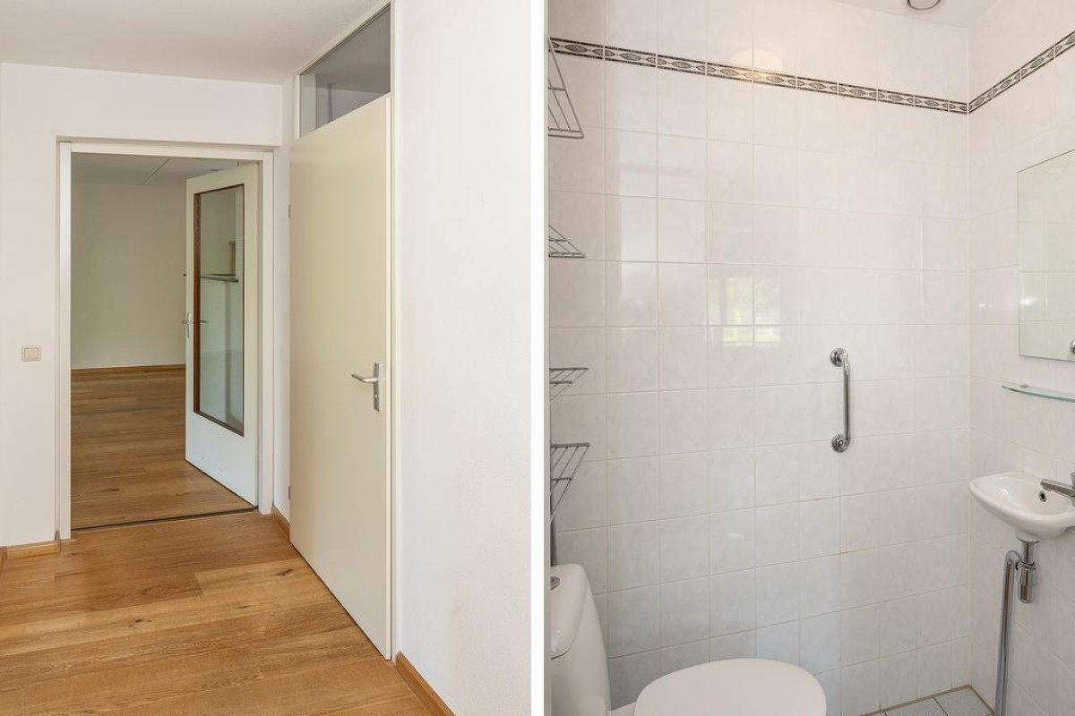 De 2 slaapkamers waarvan één direct toegang heeft tot de badkamer deze is uitgerust met met wastafel, douche en wasautomaataansluiting. Vanuit de hal is de separaat toiletruimte bereikbaar. Tevens is het balkon ook toegankelijk vanuit de grote slaapkamer. In de berging is de aansluiting voor de wasmachine alsmede cv opstelling geplaatst.