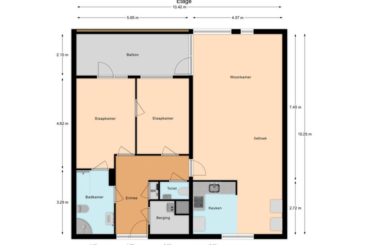 Woonetage: entree, royale hal van waar de twee slaapkamers toegankelijk zijn. De royale woonkamer heeft mooie raampartijen en biedt toegang tot het balkon. De open keuken voorzien van de nodige inbouwapparatuur en is aan de galerijzijde gesitueerd.
