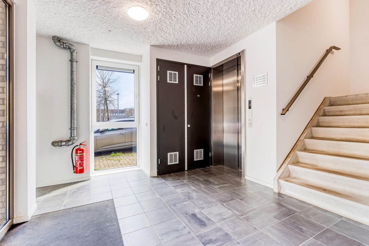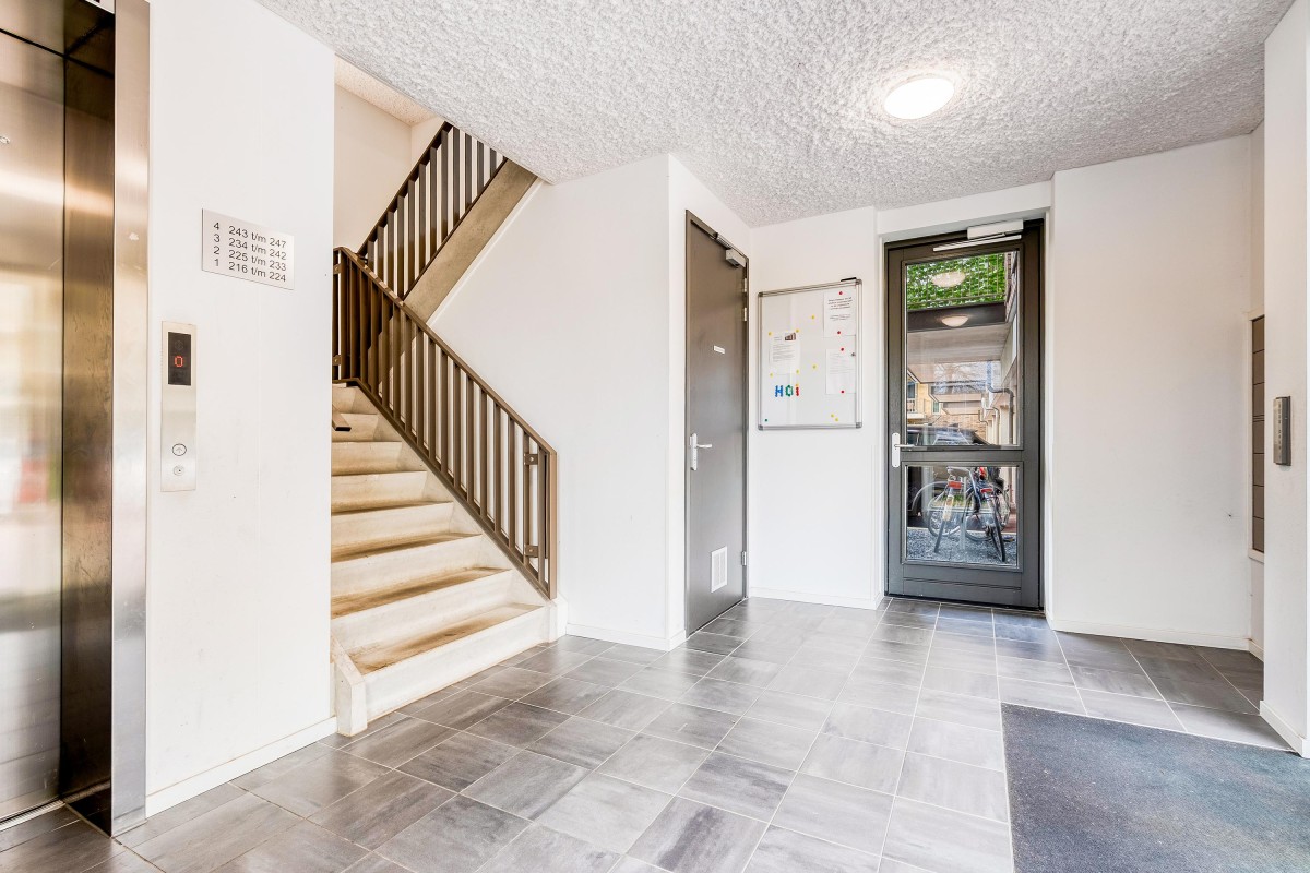 Centrale hal op de begane grond met bellentableau, brievenbussen, trapopgang en lift. Het appartement is gelegen op de 3e verdieping.