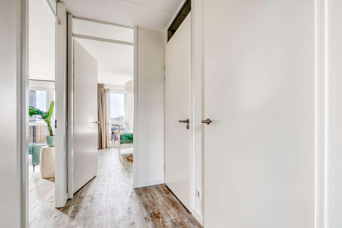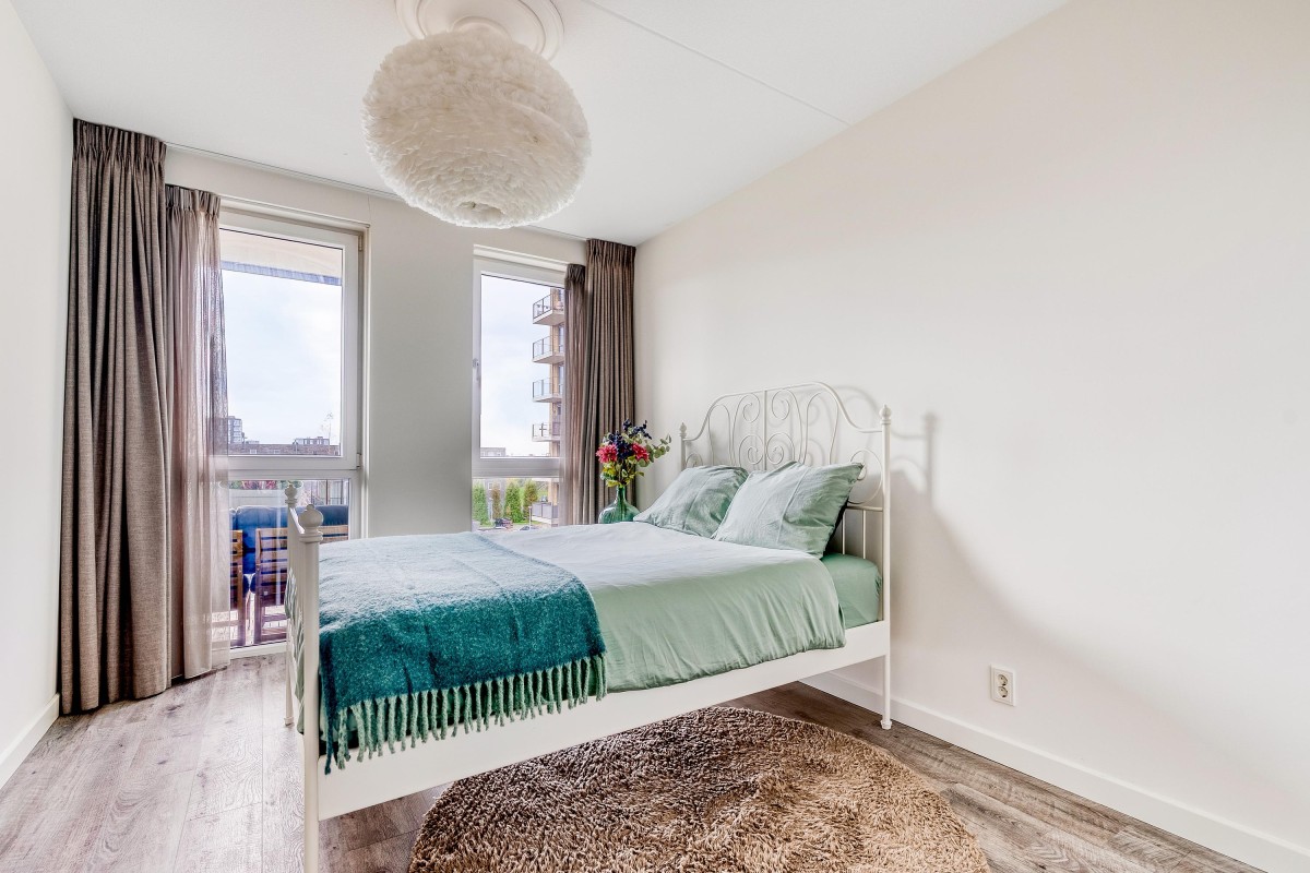Met twee volwaardige slaapkamers biedt dit appartement alle mogelijkheden. Denk aan een ruime slaapkamer en een fijne werk, kasten of logeerkamer. De badkamer is compact maar keurig afgewerkt en beschikt over een inloopdouche en een modern wastafelmeubel. Het toilet is separaat van de badkamer. Daarnaast is er een handige inpandige berging met de aansluiting voor de wasmachine en ruimte voor de technische installaties zoals de cv-ketel en de WTW-unit.