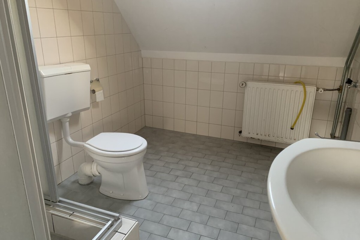 Lees verderDe badkamer is uitgevoerd met een douchehoek, een 2e toilet, een wastafel en aansluiting voor de wasmachine