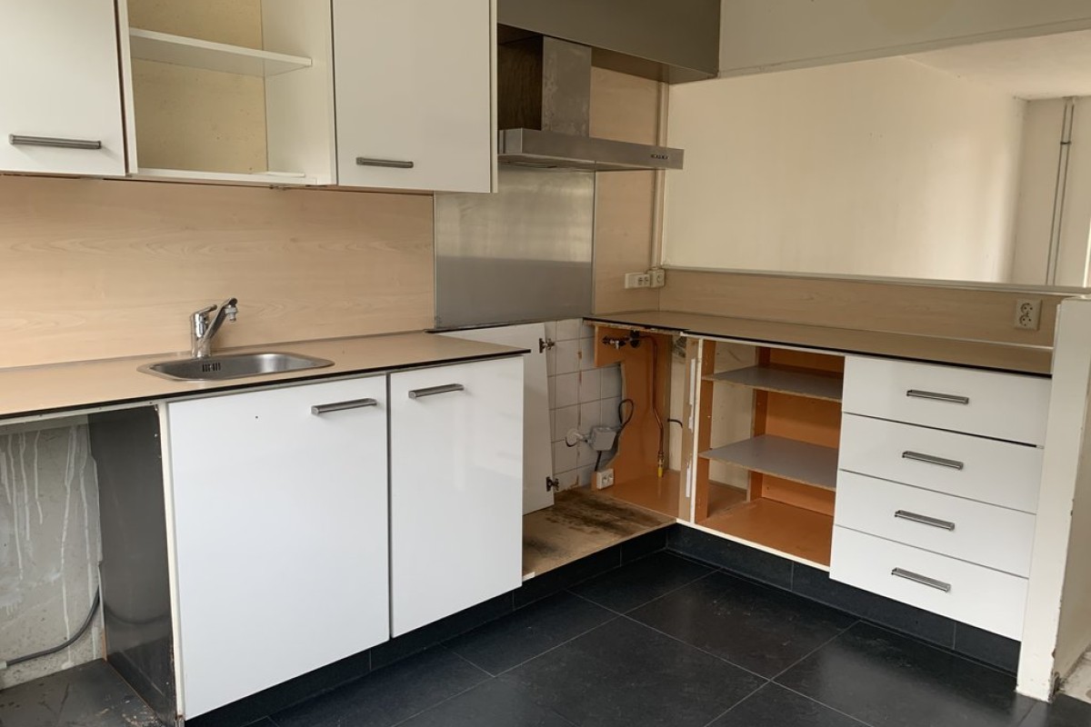 De keukenopstelling is gesitueerd aan de voorzijde Vanuit de woonkamer heeft u toegang tot de achtertuin.
