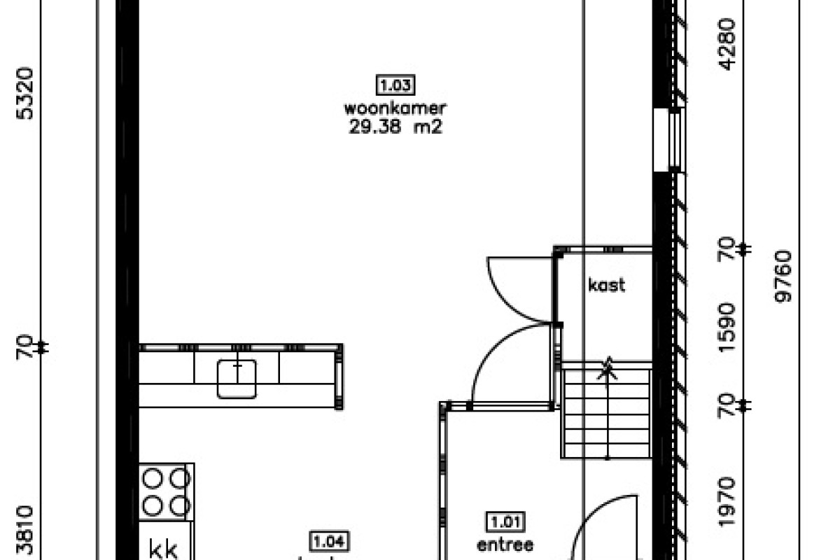 Begane grond: Entree met toilet en de trapopgang naar de eerste verdieping. De woonkamer is tuingericht