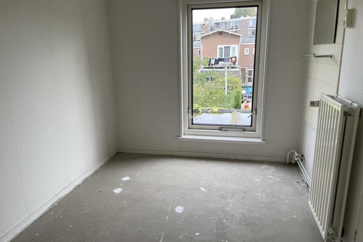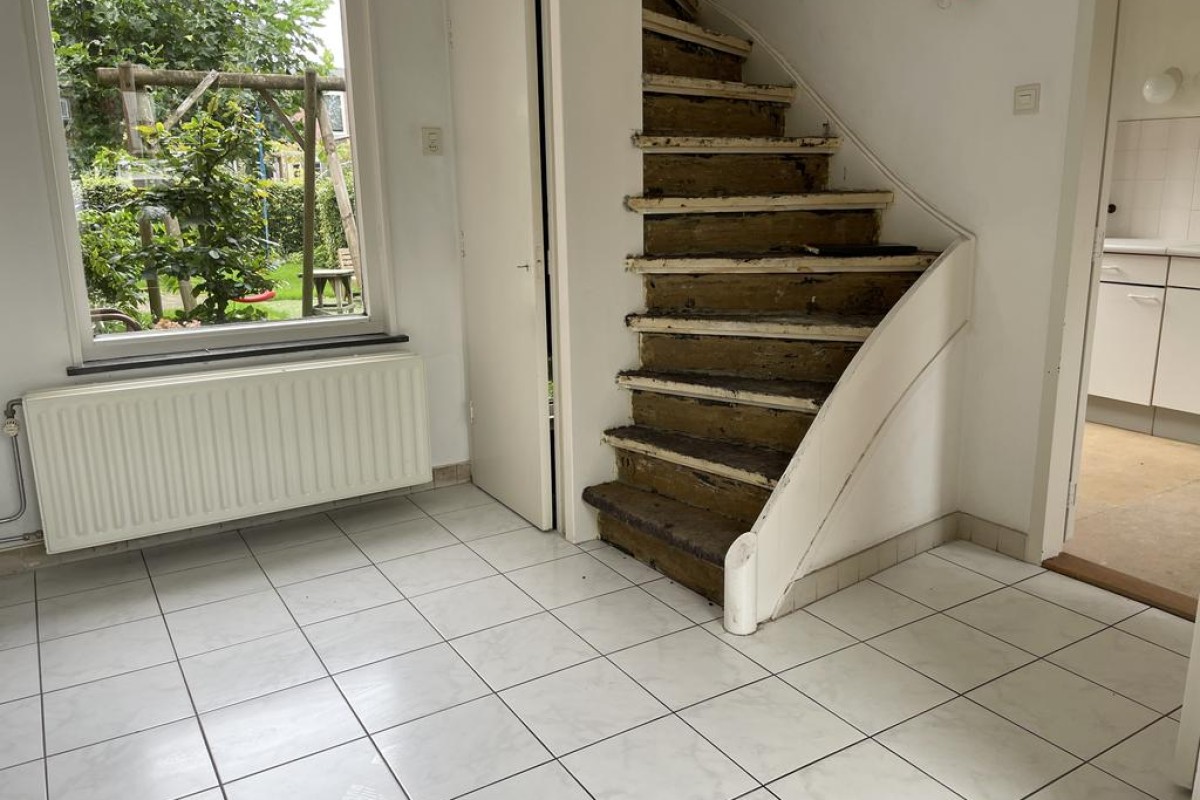 Ruime hal met trapopgang, toegang tot de kelder van circa 12m2, toilet, ruime woonkamer en dichte keuken. De woonkamer heeft veel lichtinval door de grote raampartij aan de voorzijde. De afgesloten keuken beschikt over een doorgang die toegang biedt naar binnenplaats en berging.