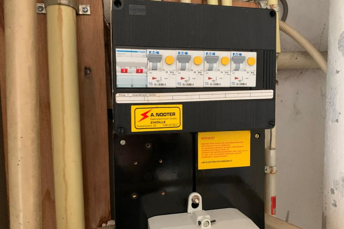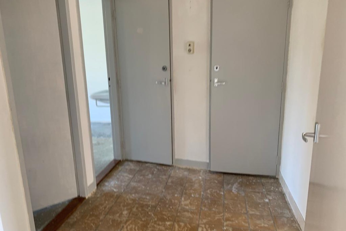 Hal met meterkast en toegang tot de keuken en woonkamer.
