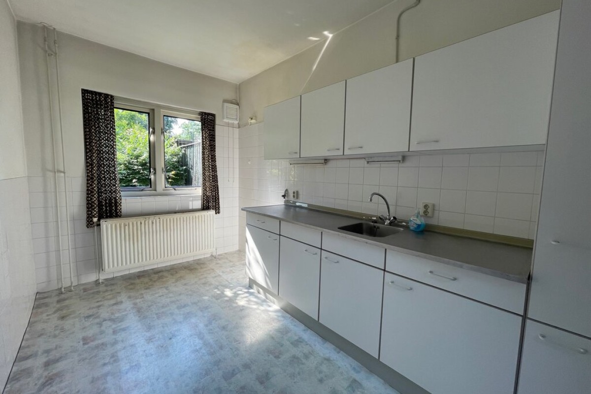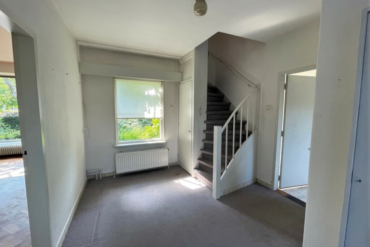 Ruime hal met trapopgang, toegang tot de kelder van circa 12m2, het toilet, de ruime woonkamer en de dichte keuken. De woonkamer heeft veel lichtinval door de grote raampartij aan de achterzijde. De afgesloten keuken beschikt over een doorgang die toegang biedt naar binnenplaats en berging.