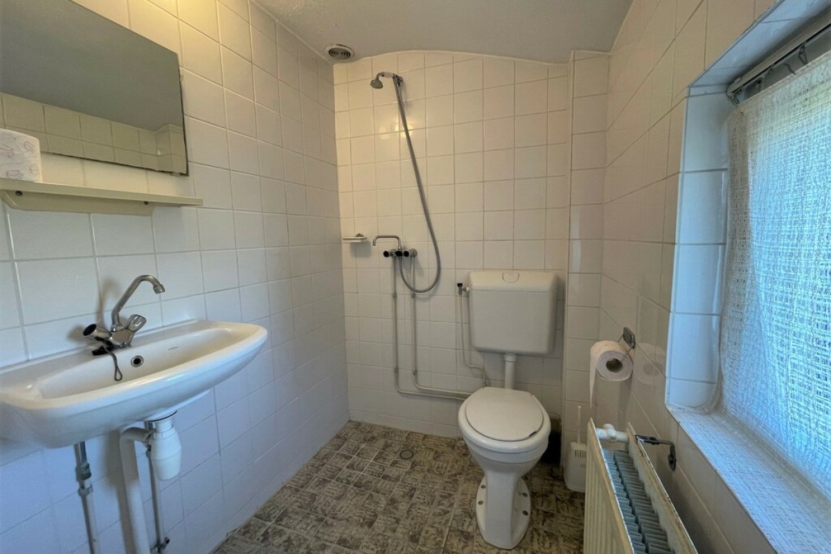 Ruime overloop, 4 slaapkamers, eenvoudige maar nette badkamer voorzien van vaste wastafel, toilet en douche.