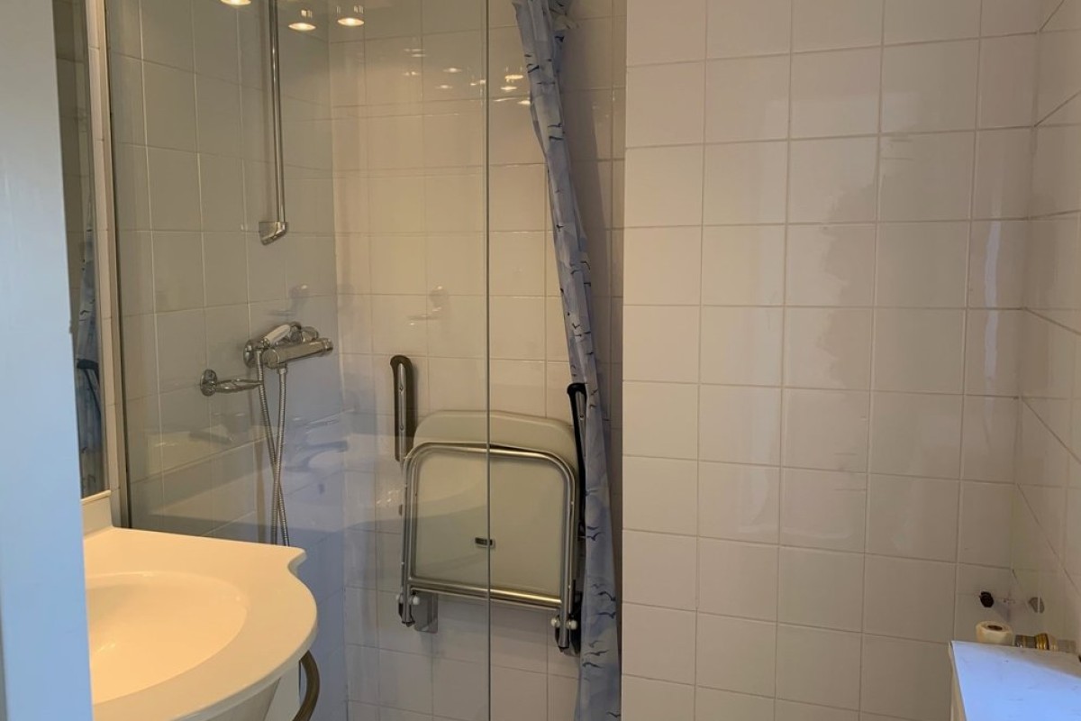 Ruime overloop, 2 slaapkamers, in een voormalige (3e) slaapkamer bevindt zich nu de badkamer voorzien van vaste wastafel, ligbad en toilet. De oorspronkelijke badkamer is er ook nog en is voorzien van een douchehoek en wastafel.