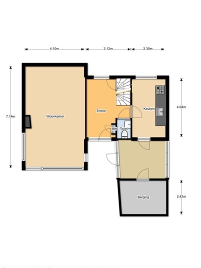 Ruime hal met trapopgang, toegang tot de kelder van circa 12m2, toilet, ruime woonkamer en dichte keuken. De woonkamer heeft veel lichtinval door de grote raampartij aan de voorzijde. De afgesloten keuken beschikt over een doorgang die toegang biedt naar binnenplaats en berging.