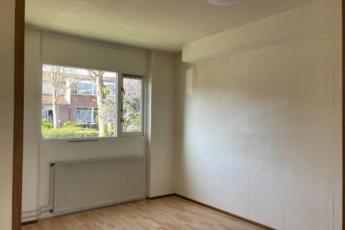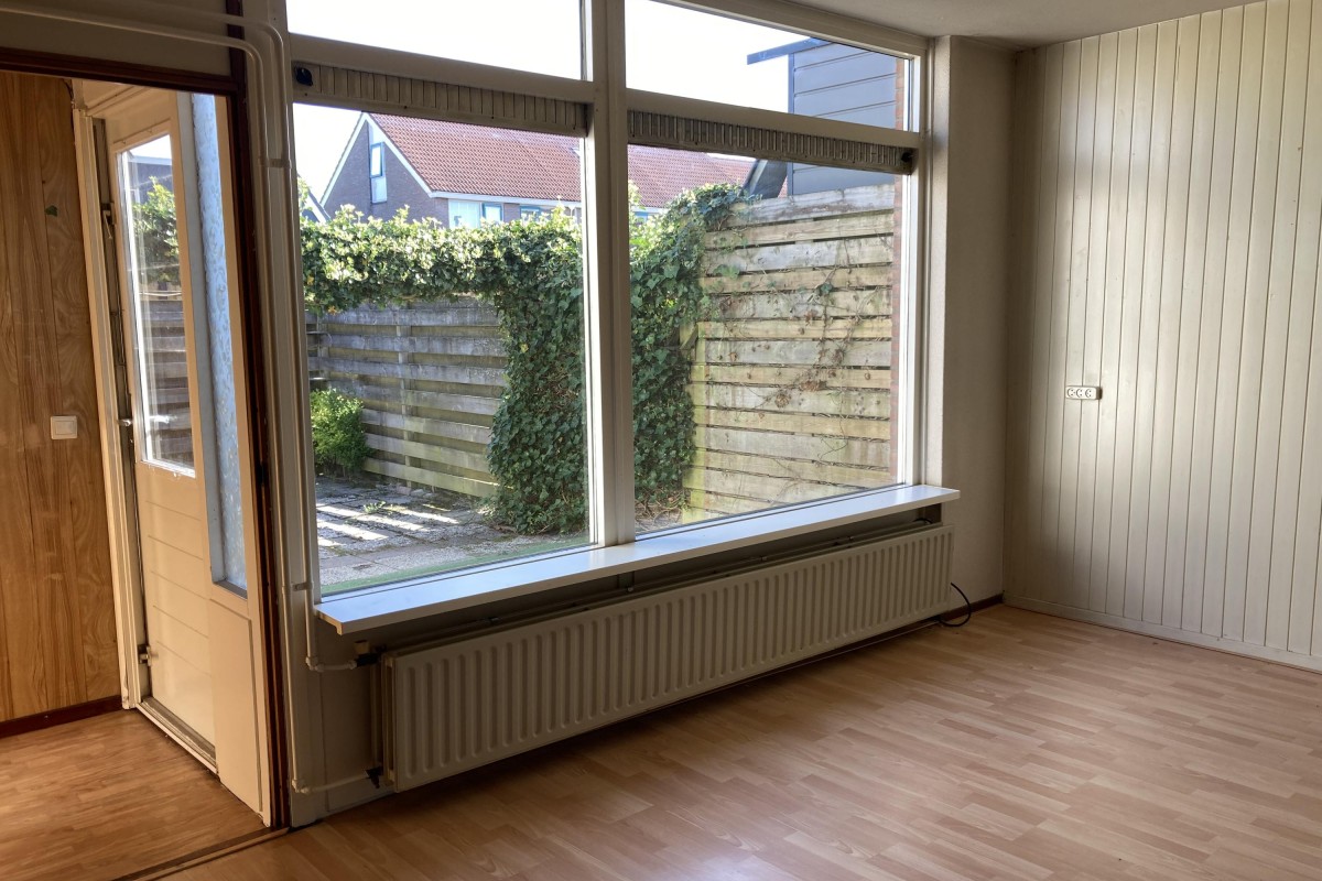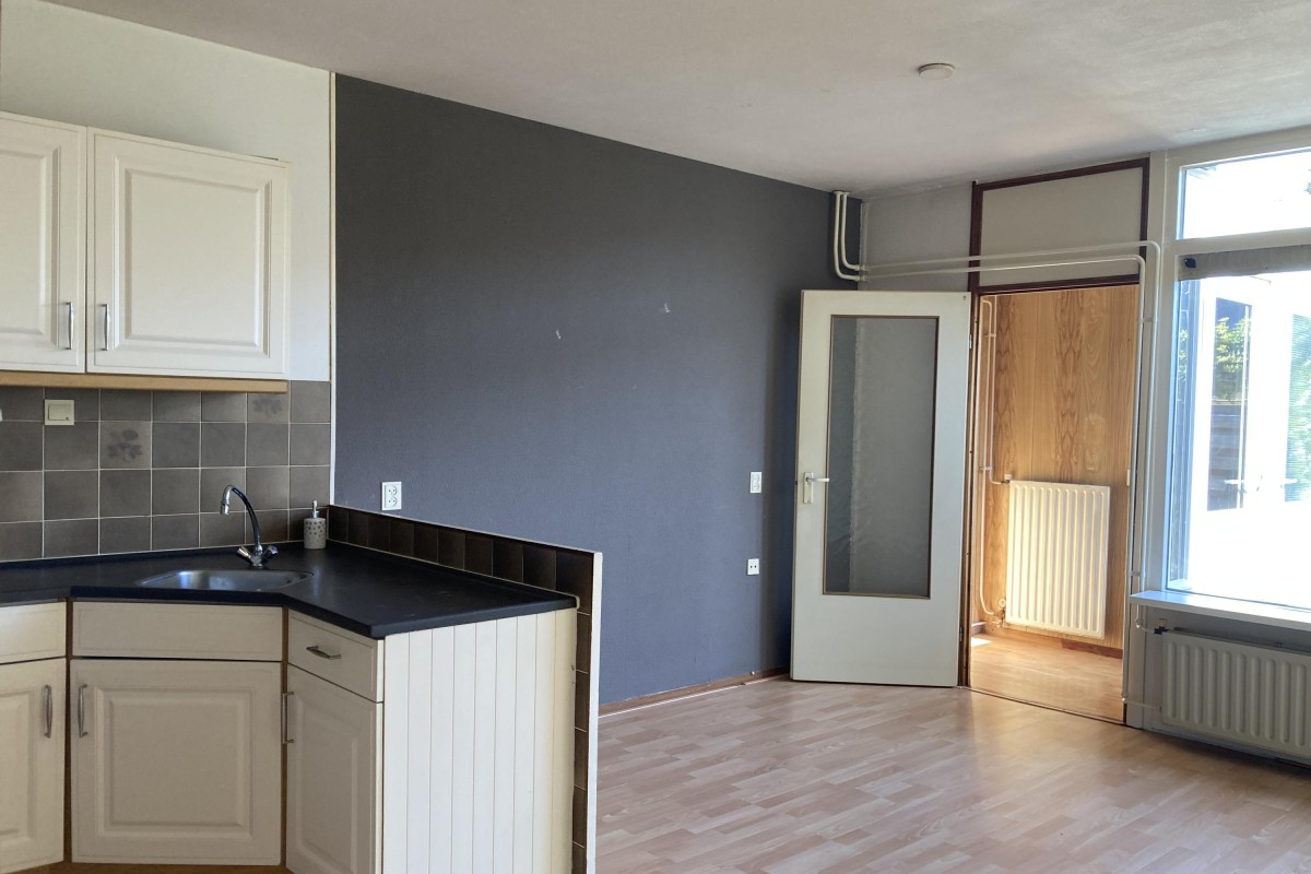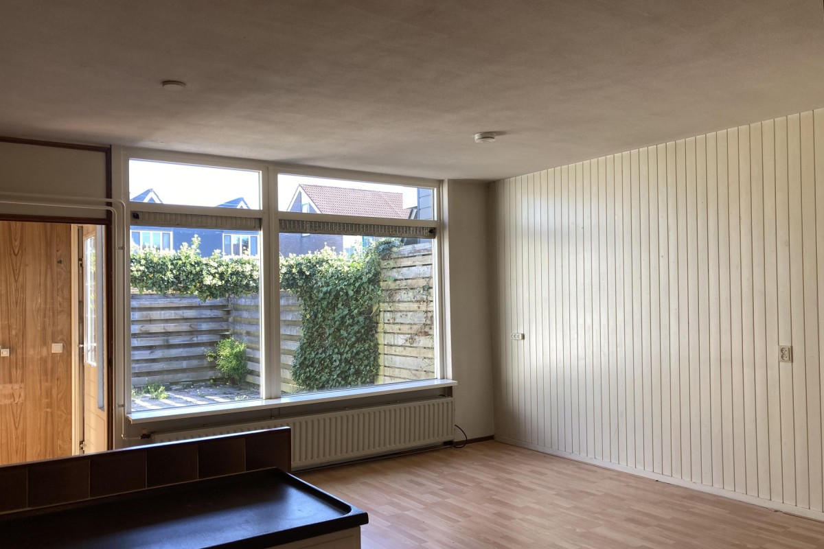 Lees verderDe keuken is voorzien van een eenvoudig hoek opgesteld keukenblok met een losse kast en de begane grond is voorzien van een laminaatvloer. Via de woonkamer kom je bij de riante slaapkamer aan de voorzijde. De tuin is op het noorden gesitueerd en bereikbaar via de bijkeuken. De tuin is voorzien van een terras, een buitenkraan, toegang tot de aangebouwde berging en een achterom.