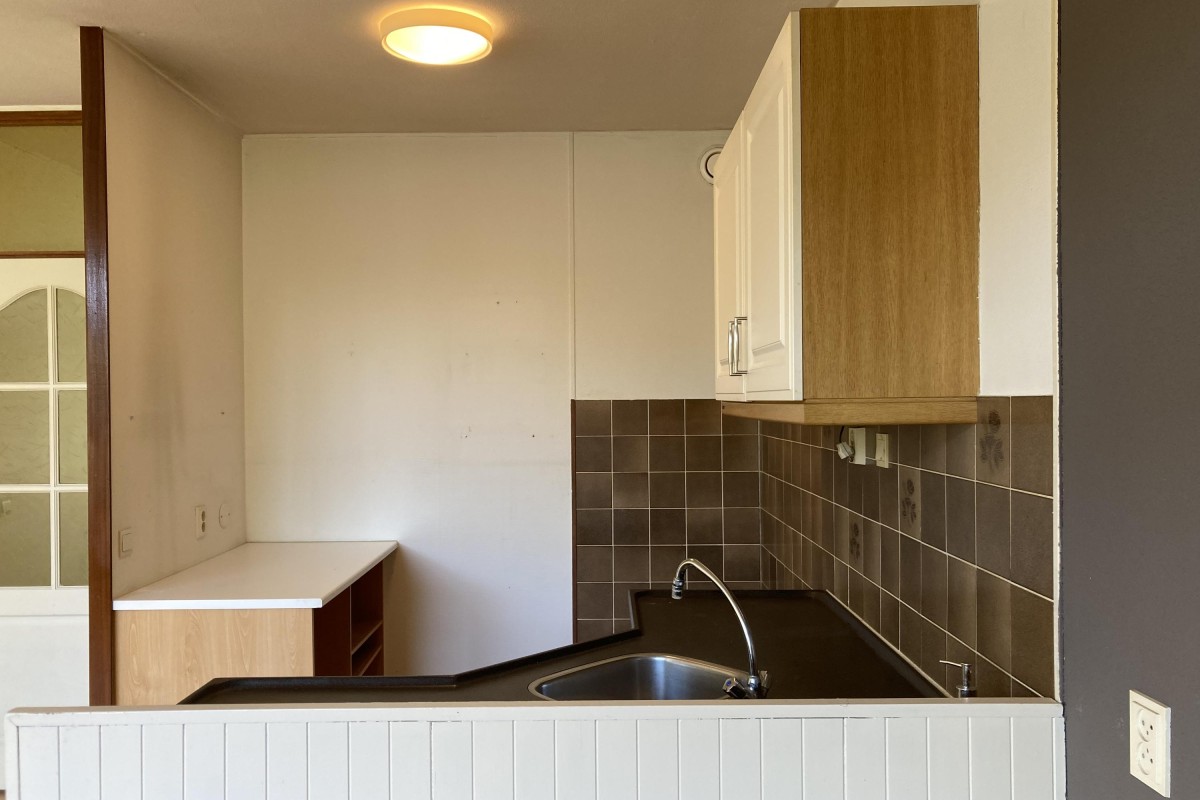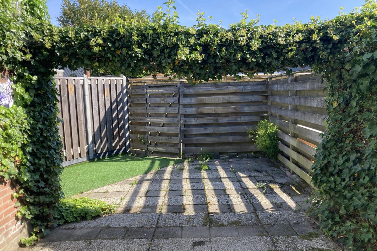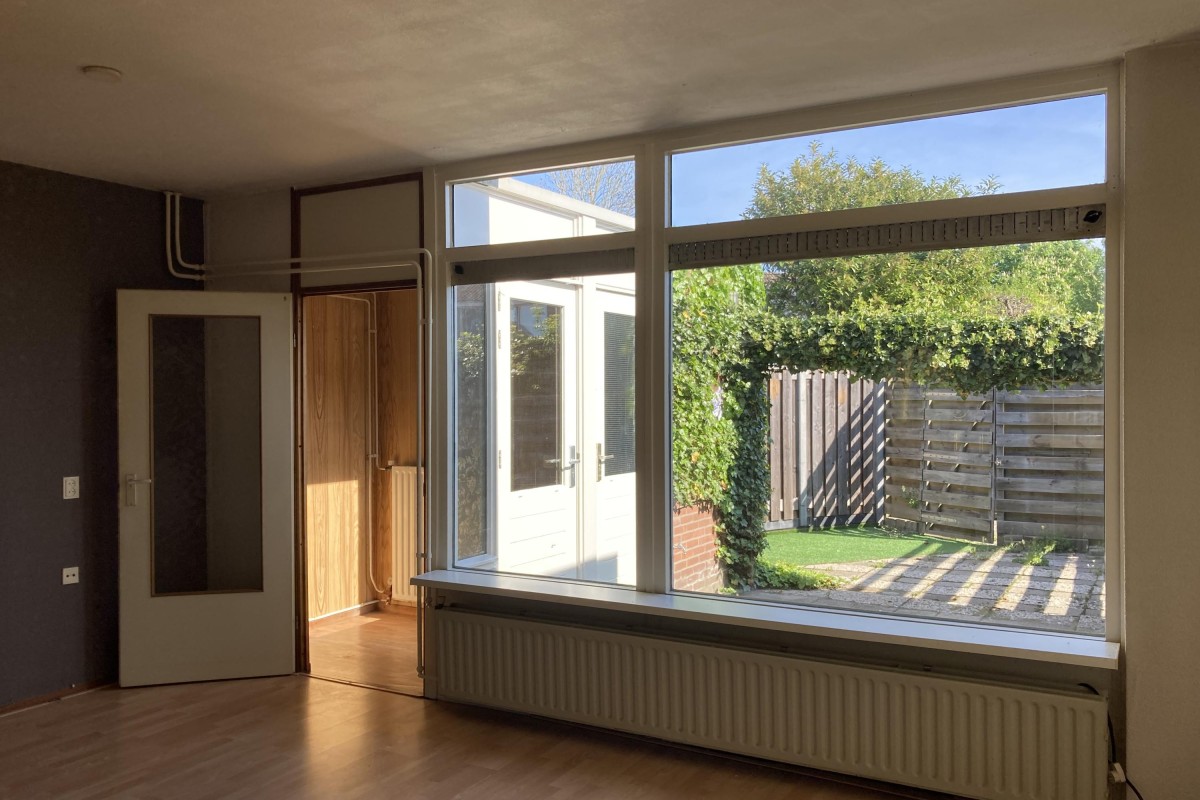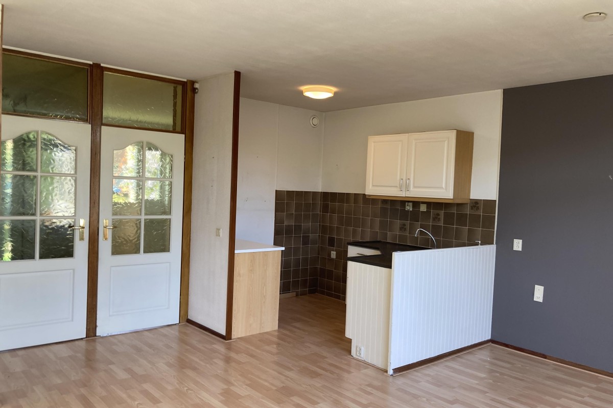 Lees verderDe keuken is voorzien van een eenvoudig hoek opgesteld keukenblok met een losse kast en de begane grond is voorzien van een laminaatvloer. Via de woonkamer kom je bij de riante slaapkamer aan de voorzijde. De tuin is op het noorden gesitueerd en bereikbaar via de bijkeuken. De tuin is voorzien van een terras, een buitenkraan, toegang tot de aangebouwde berging en een achterom.