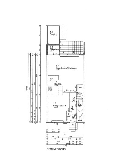 * Aangebouwde bijkeuken/wasruimte en berging.