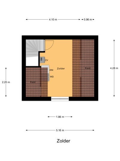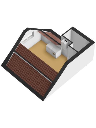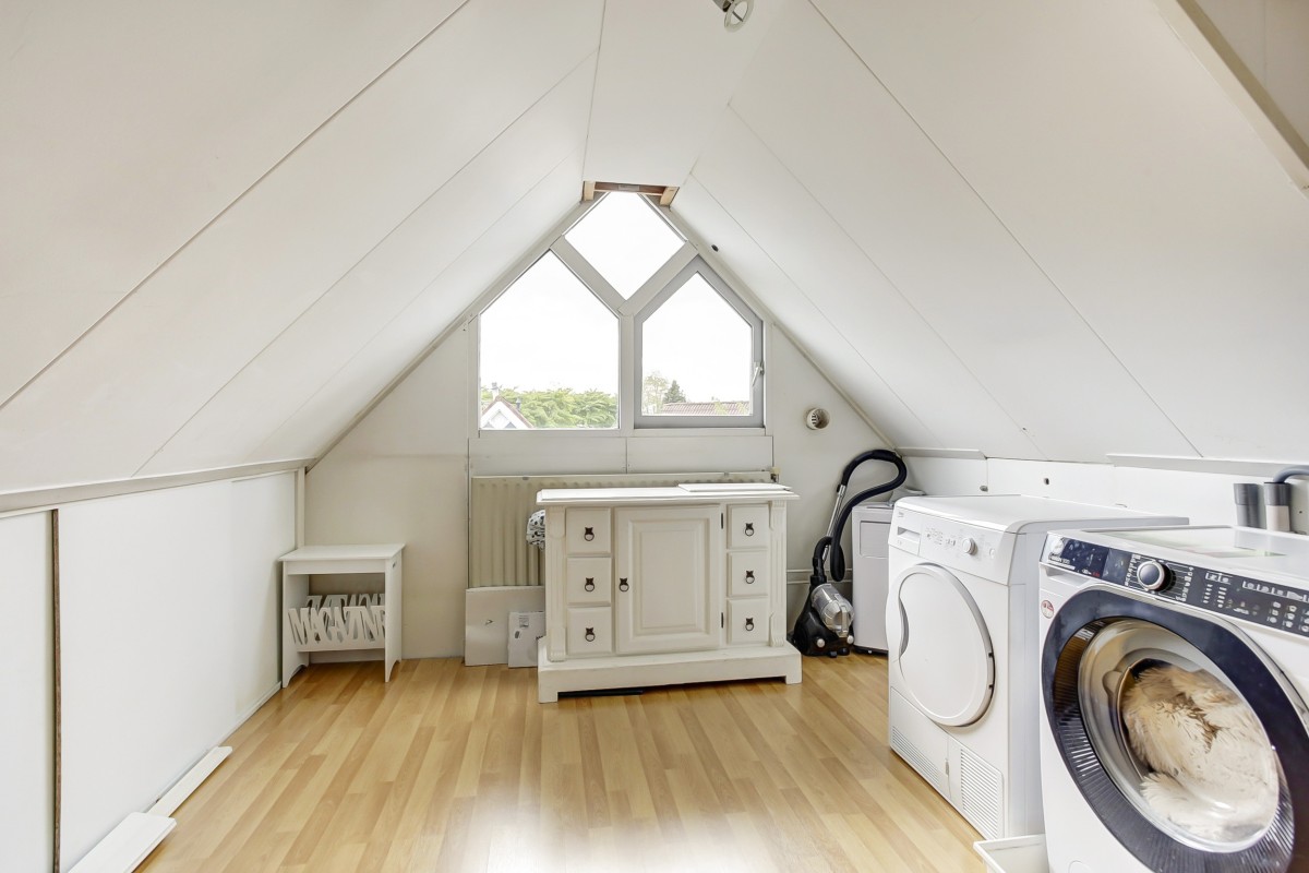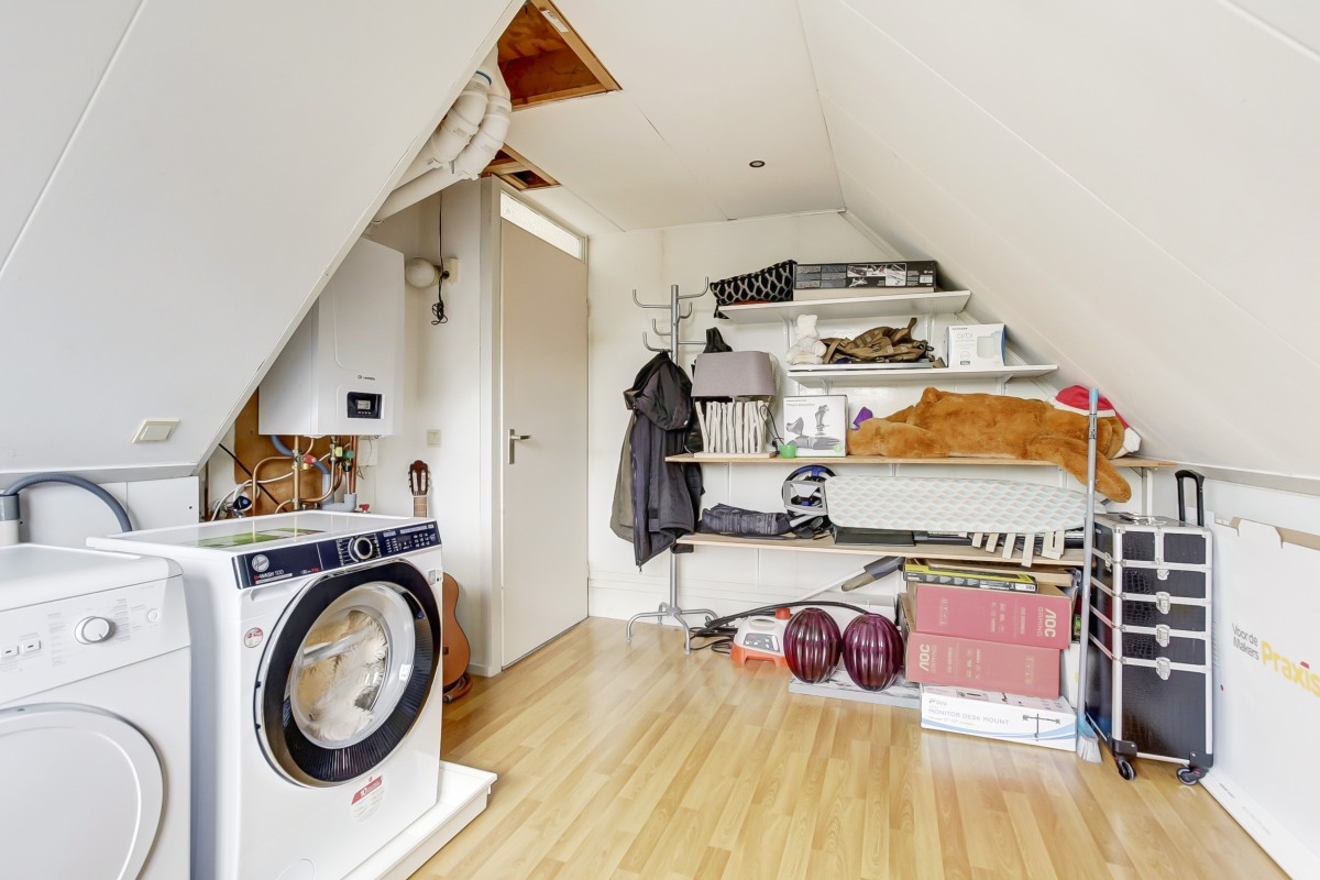 Tweede verdieping: middels een vaste trap is de voorzolder bereikbaar. Een lichte zolderkamer biedt de opstelplaats voor de vernieuwde c.v. ketel (Remeha HR), mechanische ventilatie en de wasmachine en droger.