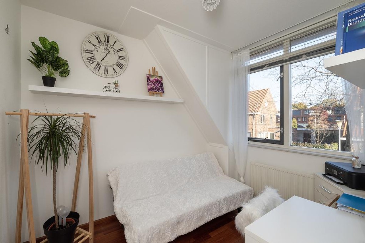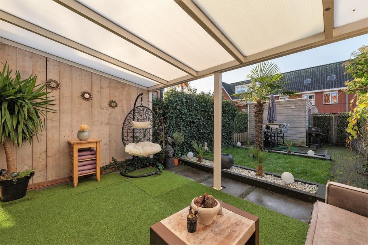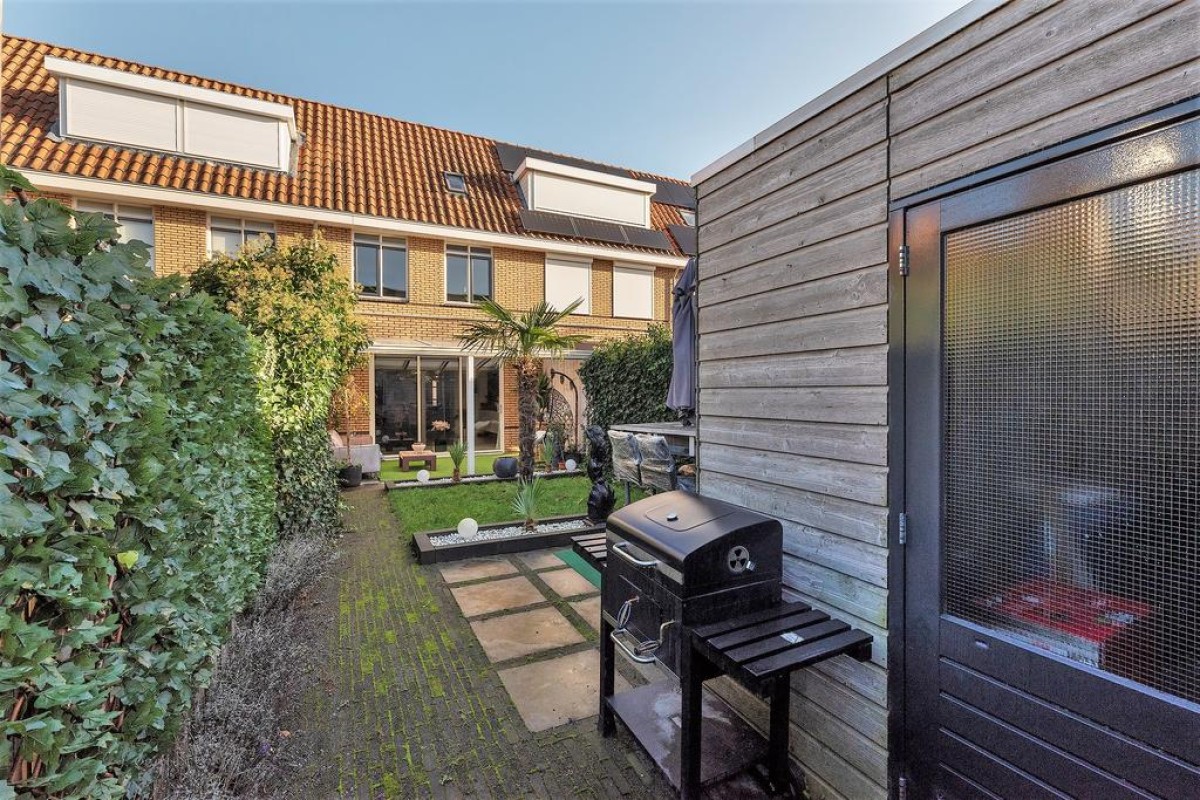 Deze royale tussenwoning uit 2006 staat in de geliefde deelwijk "de Hoven". Kenmerkend voor dit deel van de wijk is de jaren ’30 bouwstijl Door de uitbouw en de serre aan de achterzijde is er veel ruimte gecreëerd. De zonnige tuin met houten berging ligt op het zuidwesten