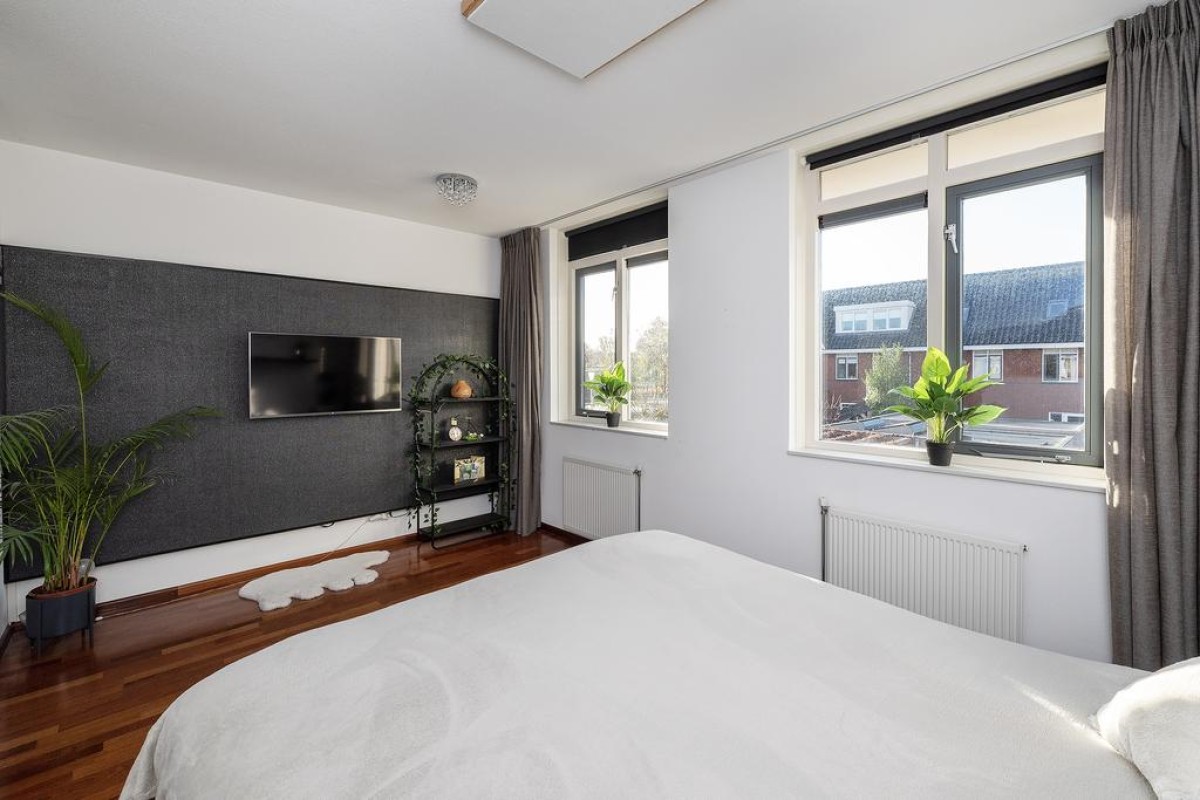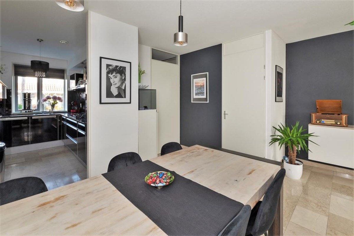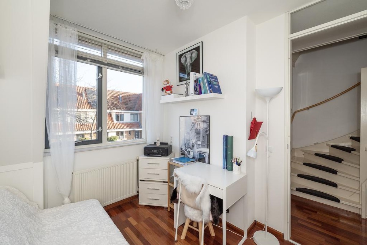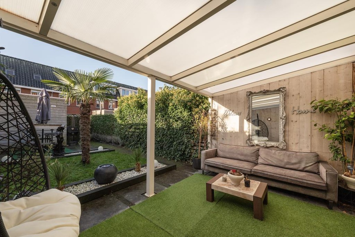 Deze royale tussenwoning uit 2006 staat in de geliefde deelwijk "de Hoven". Kenmerkend voor dit deel van de wijk is de jaren ’30 bouwstijl Door de uitbouw en de serre aan de achterzijde is er veel ruimte gecreëerd. De zonnige tuin met houten berging ligt op het zuidwesten