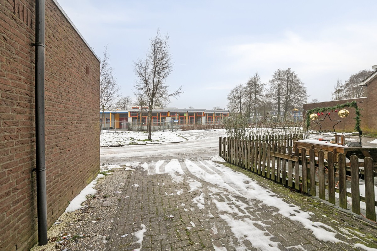 Via de oprit met een parkeerplaats op eigen terrein bereikt u de entree van de woning.