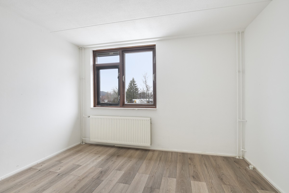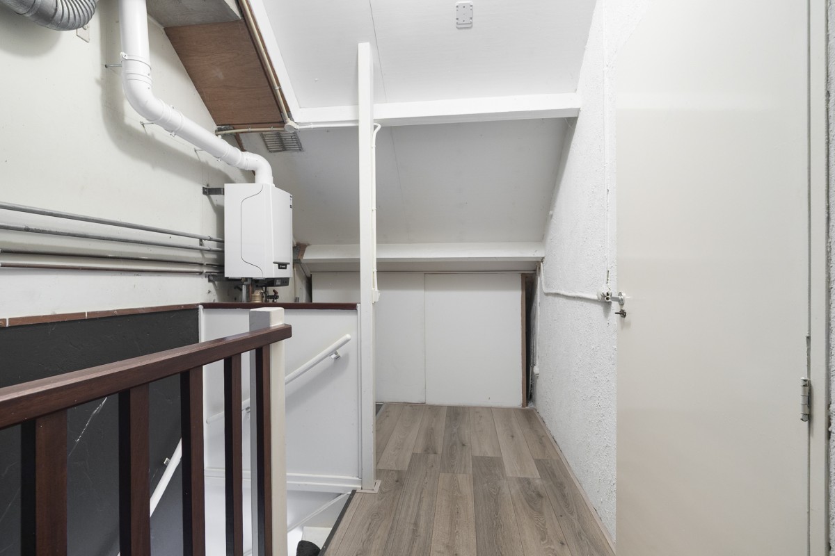 De vloer van de tweede verdieping is voorzien van laminaat.
