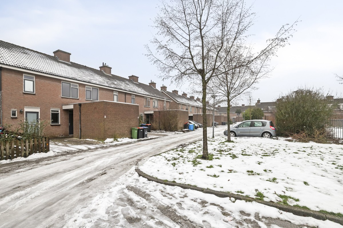 Via de voortuin met parkeren op eigen terrein, bereikt u de entree van de woning.