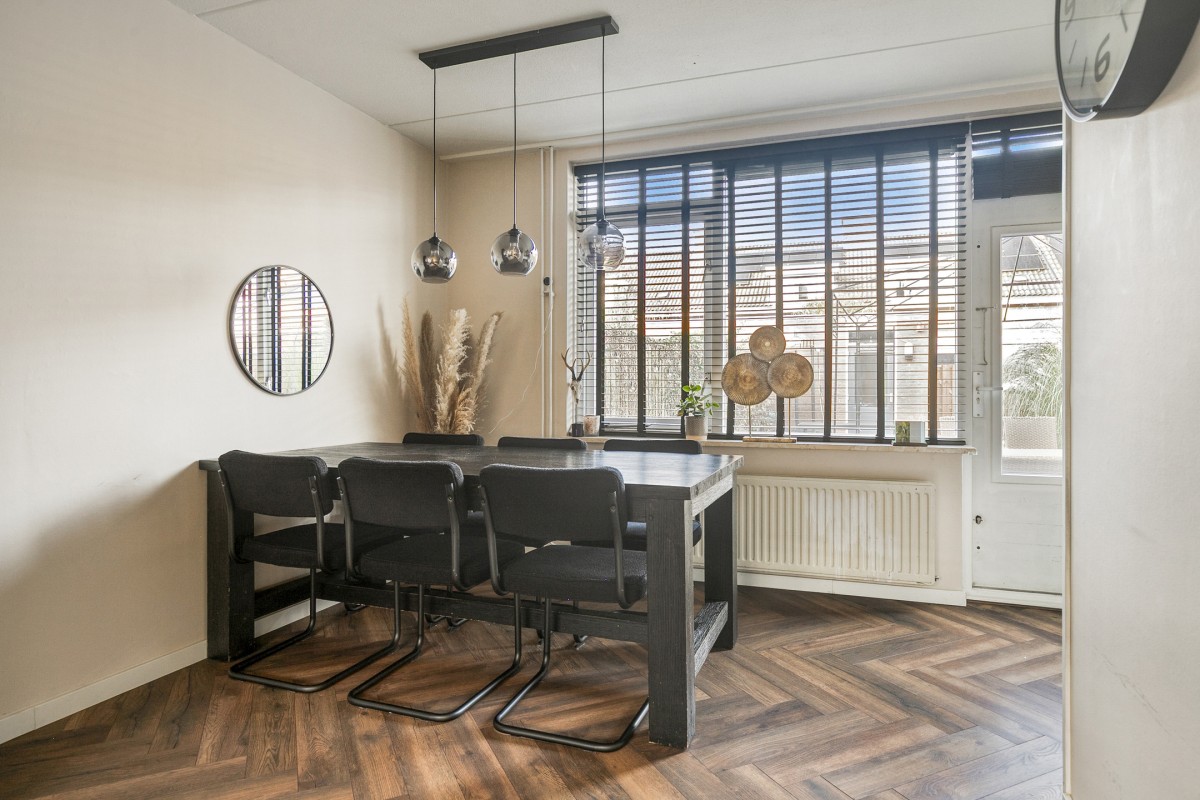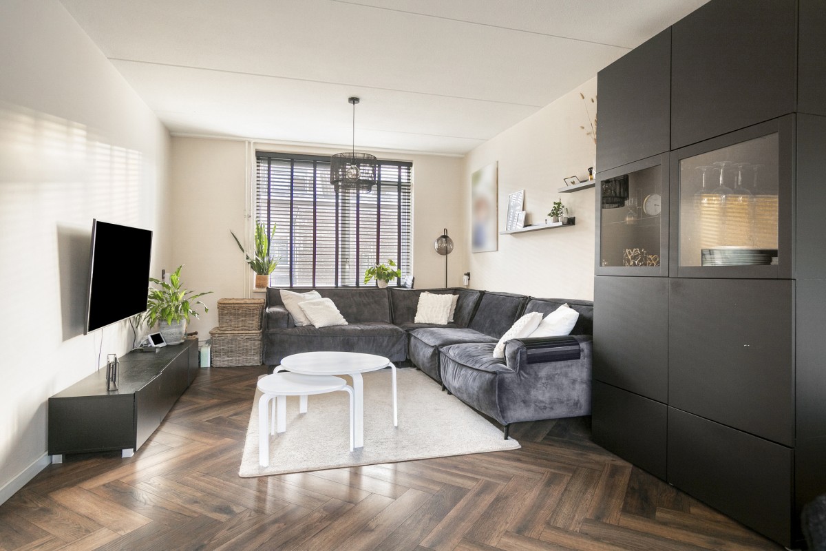 Ruime woonkamer met veel lichtinval. De woonkamer biedt genoeg ruimte voor een fijne zithoek en eettafel.