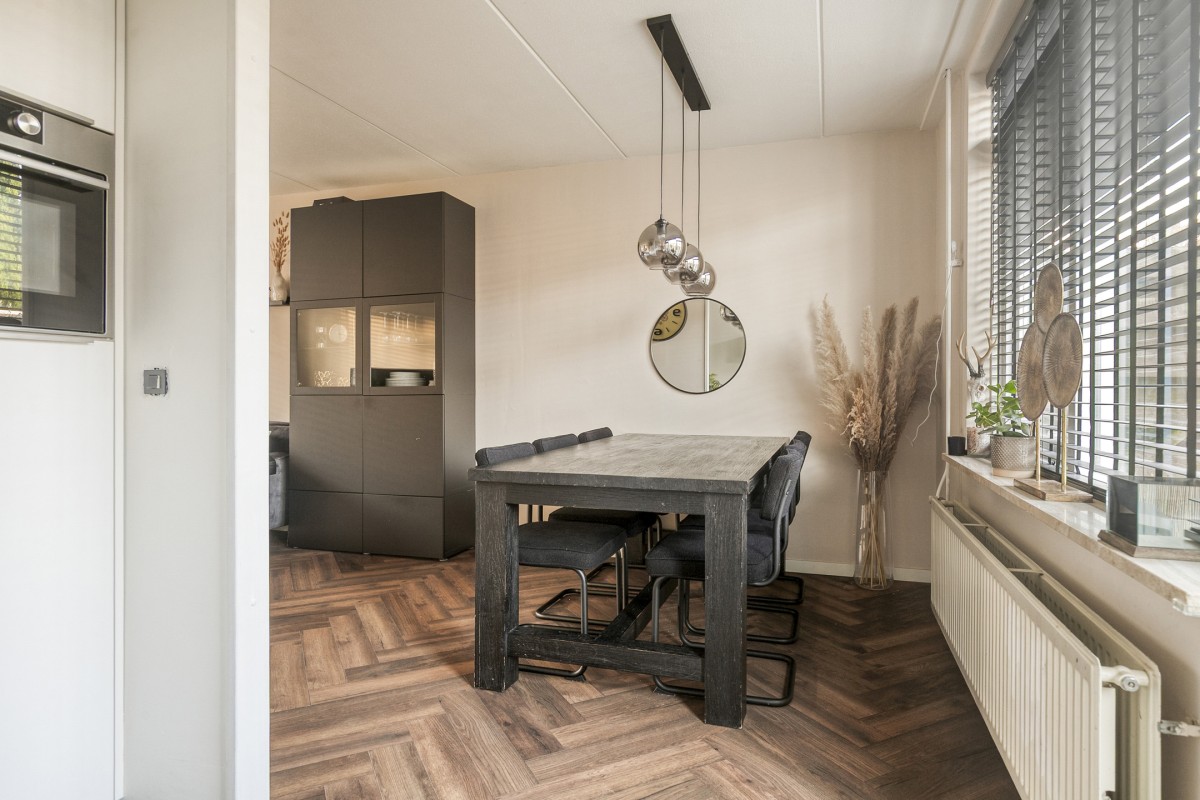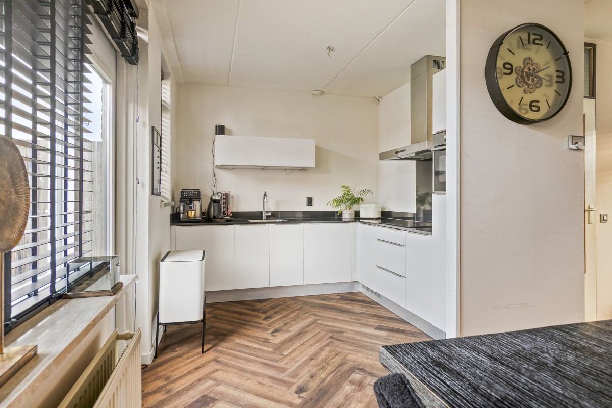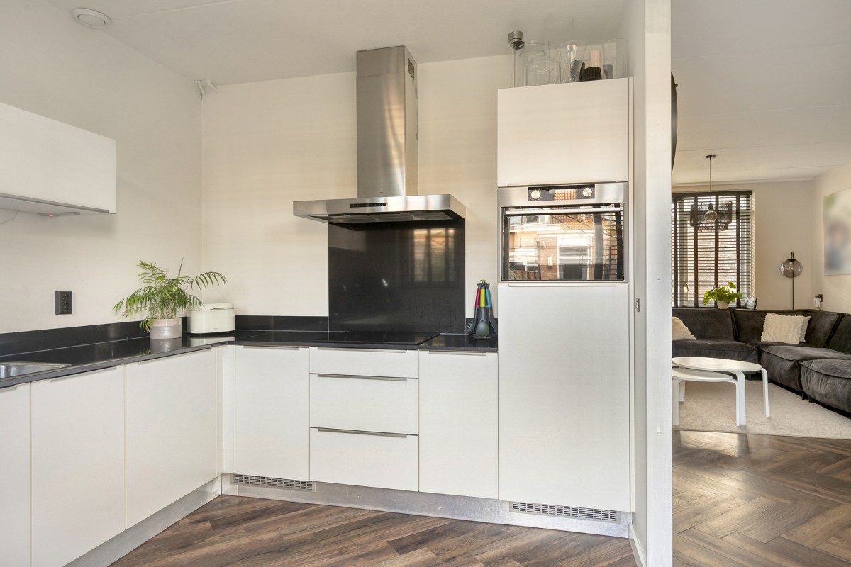 De keuken is voorzien van een combi-oven, vaatwasser, inductie kookplaat, koelkast en een afzuigkap.