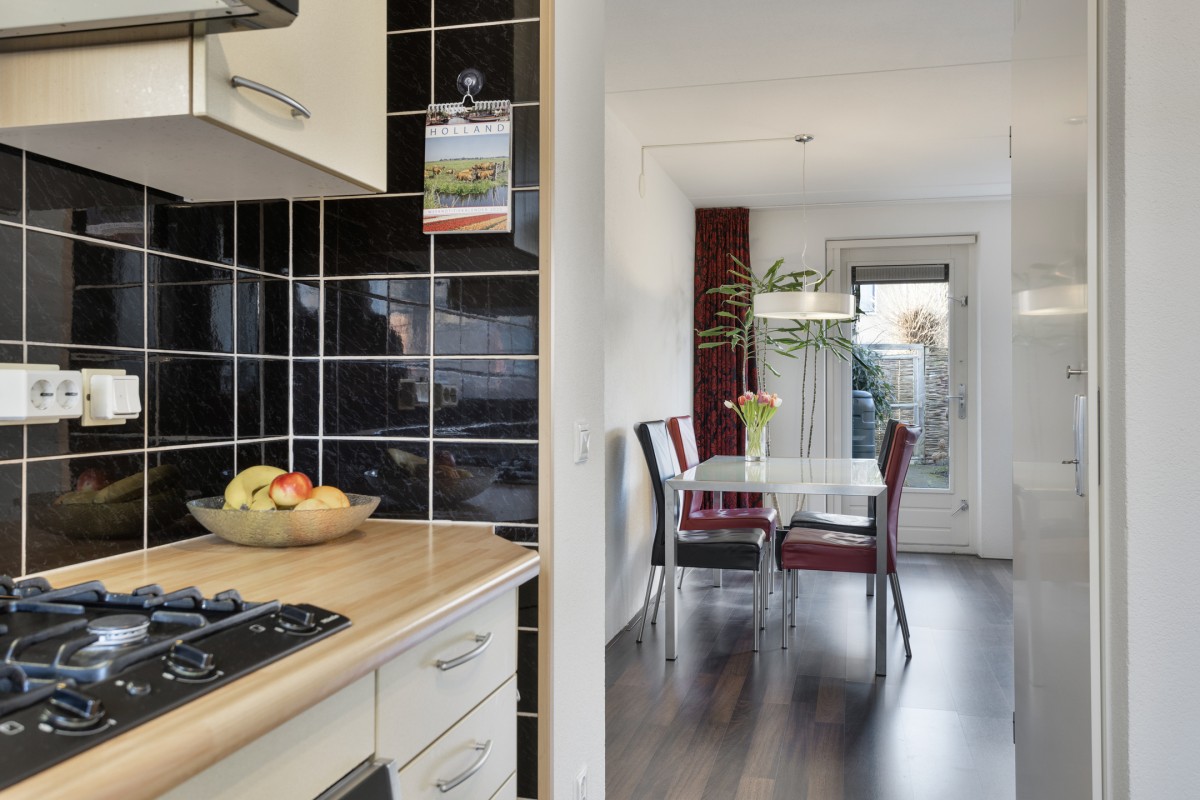 De woning is compact en handig ingedeeld. De woonkamer is tuingericht en de deels open keuken is gelegen aan de voorzijde ( straat). De keuken is in een hoekopstelling geplaatst wel wat ouder maar voldoet nog prima.