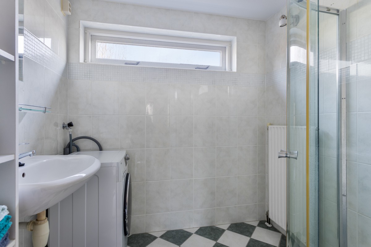 Lees verderOp de verdieping bevinden zich drie slaapkamers en een badkamer. De badkamer is ingericht met een douchehoek en wastafel en aansluiting voor de wasmachine.