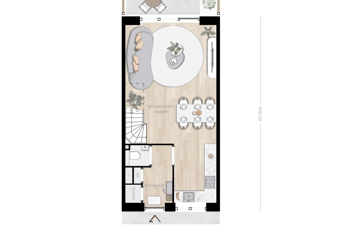 Deze woningvariant is een stoere eengezinswoning van circa 133 m², met een breedte van 4,80 meter en een indrukwekkende verdiepingshoogte op de begane grond van 3,50 meter.
