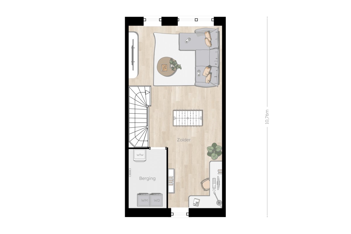 -2e verdieping: Vrij indeelbare ruimte van ca. 39 m² onder een dwarskap – perfect voor extra slaapkamer, thuiskantoor of hobbyruimte.