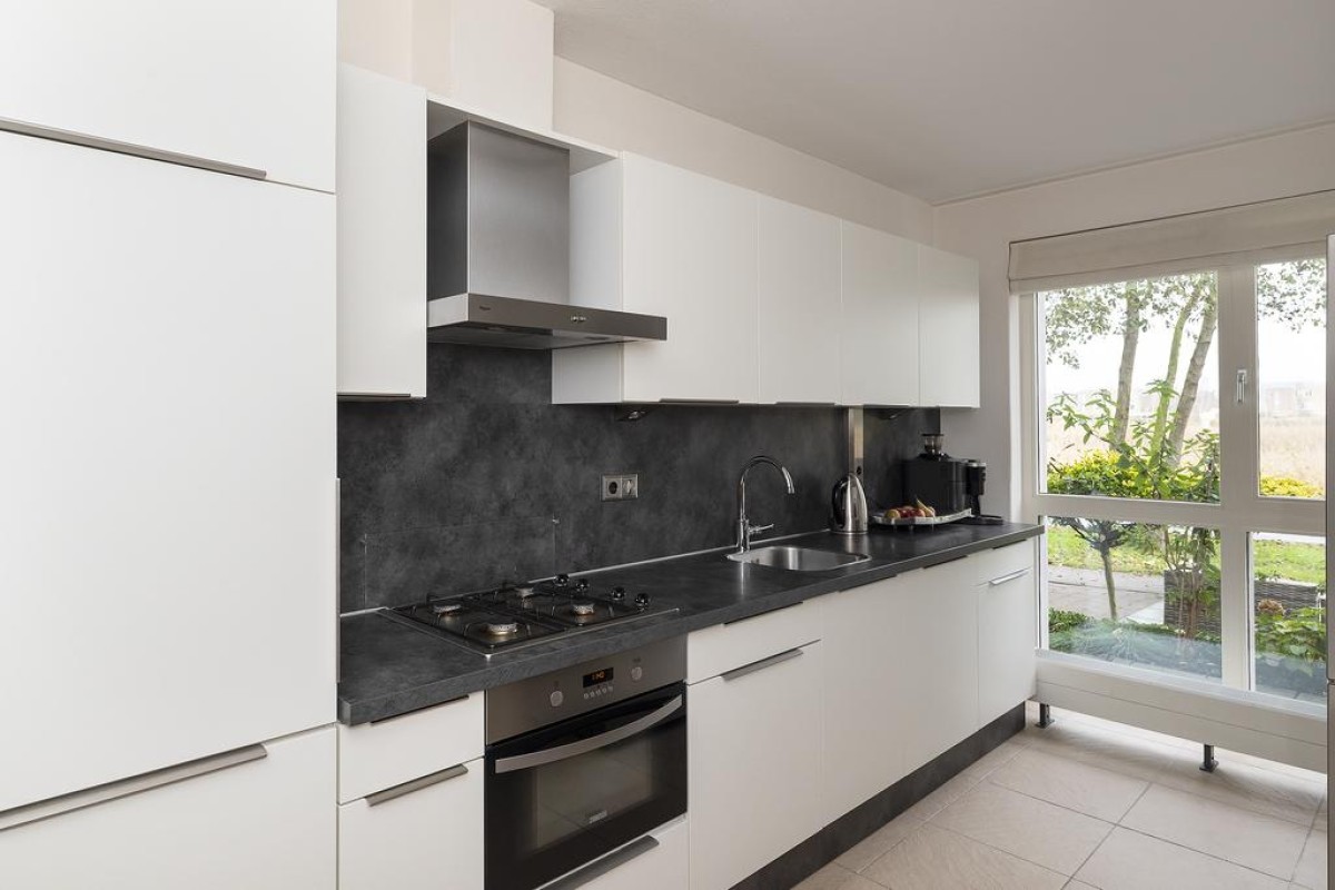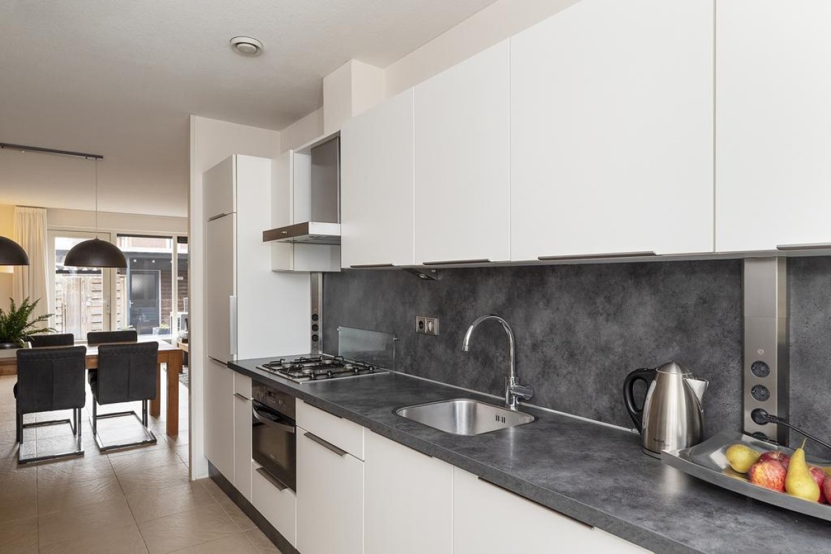 Ruime hal met, trapkast, toiletruimte, meterkast dichte trapopgang naar de eerste verdieping. Tuingerichte woonkamer met moderne open keuken v.v. inbouwapparatuur. Aan de voorzijde van de woning geeft de ruime keuken een geweldig weids uitzicht over de Rietkraag.