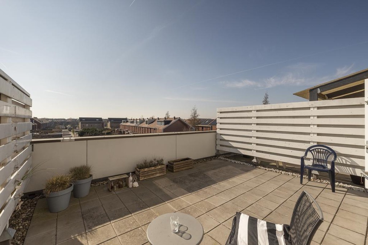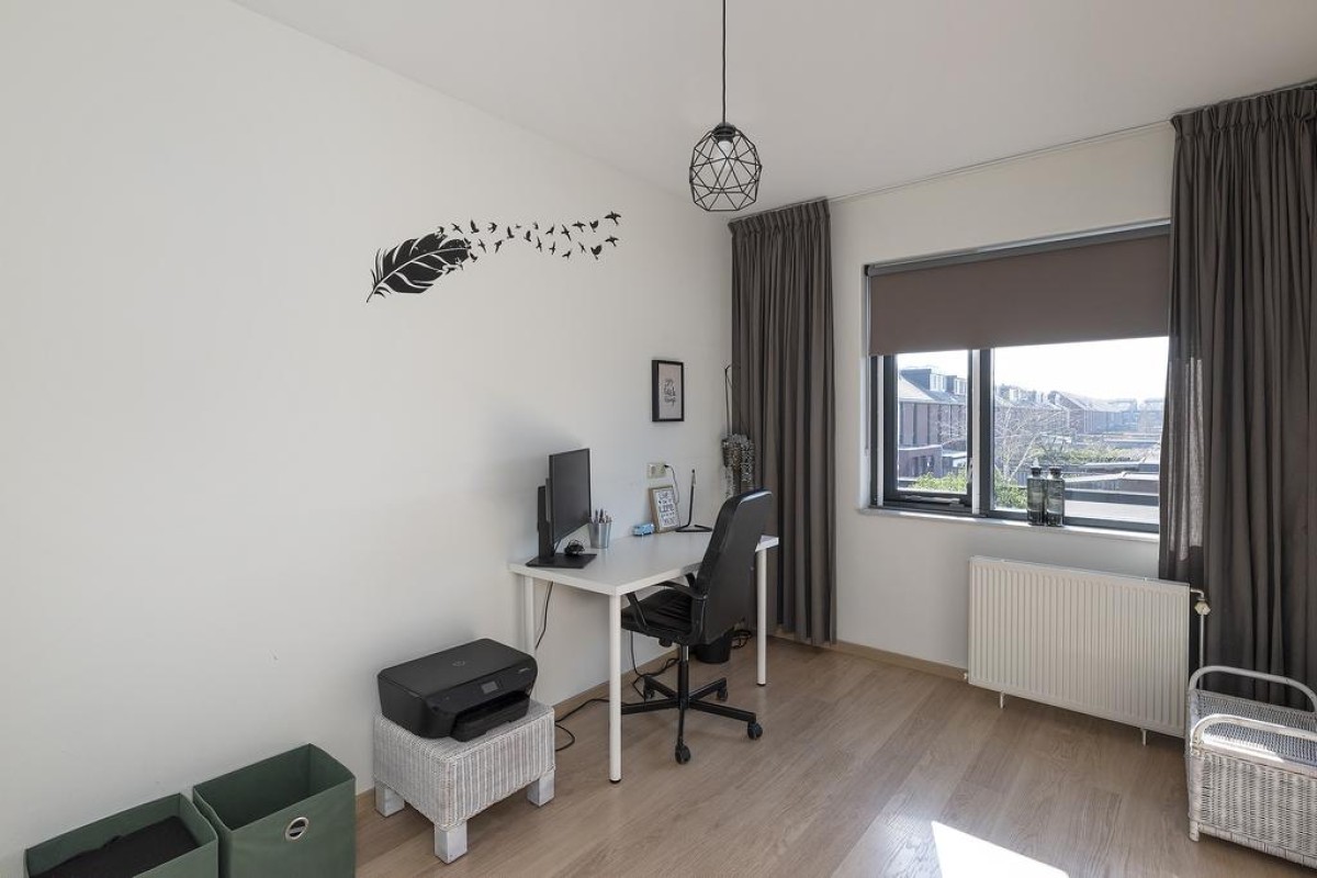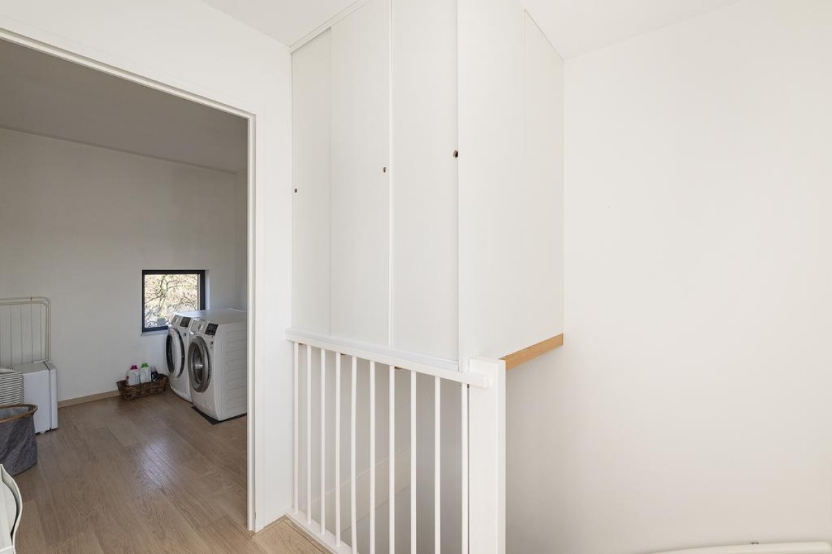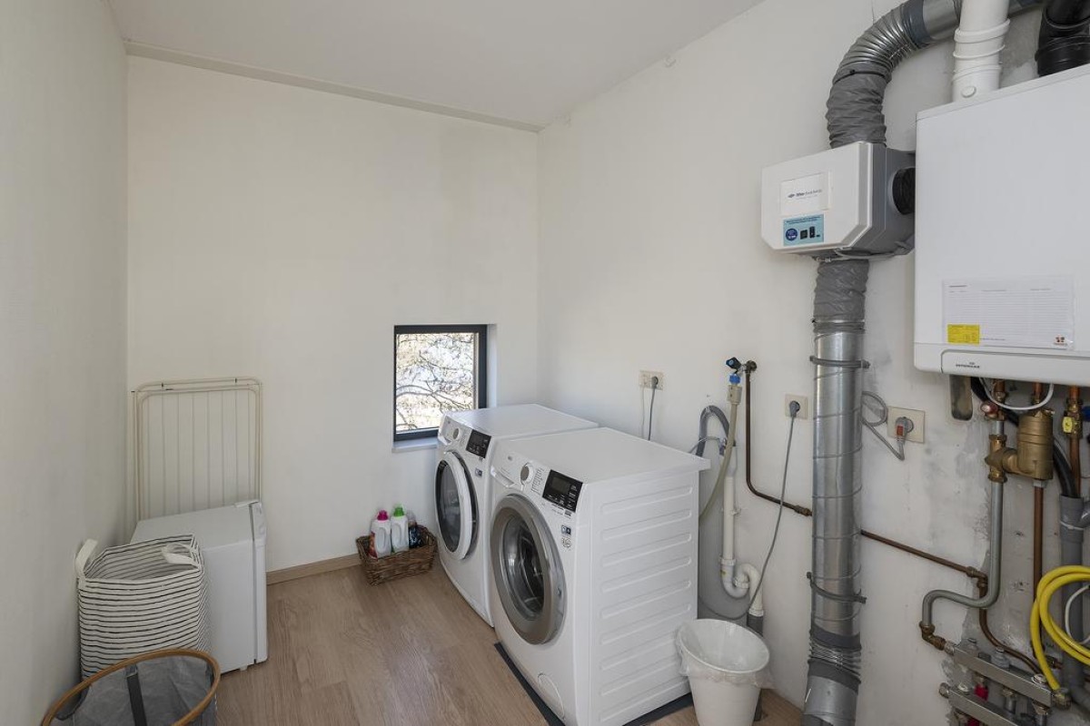 2e Verdieping: overloop, wasruimte met opstelling voor het witgoed en de c.v.-ketel (2018) en vervolgens nog een zeer royale 4e slaapkamer met vaste kastenwand en airco!. Via deze kamer is ook het royale dakterras te bereiken.