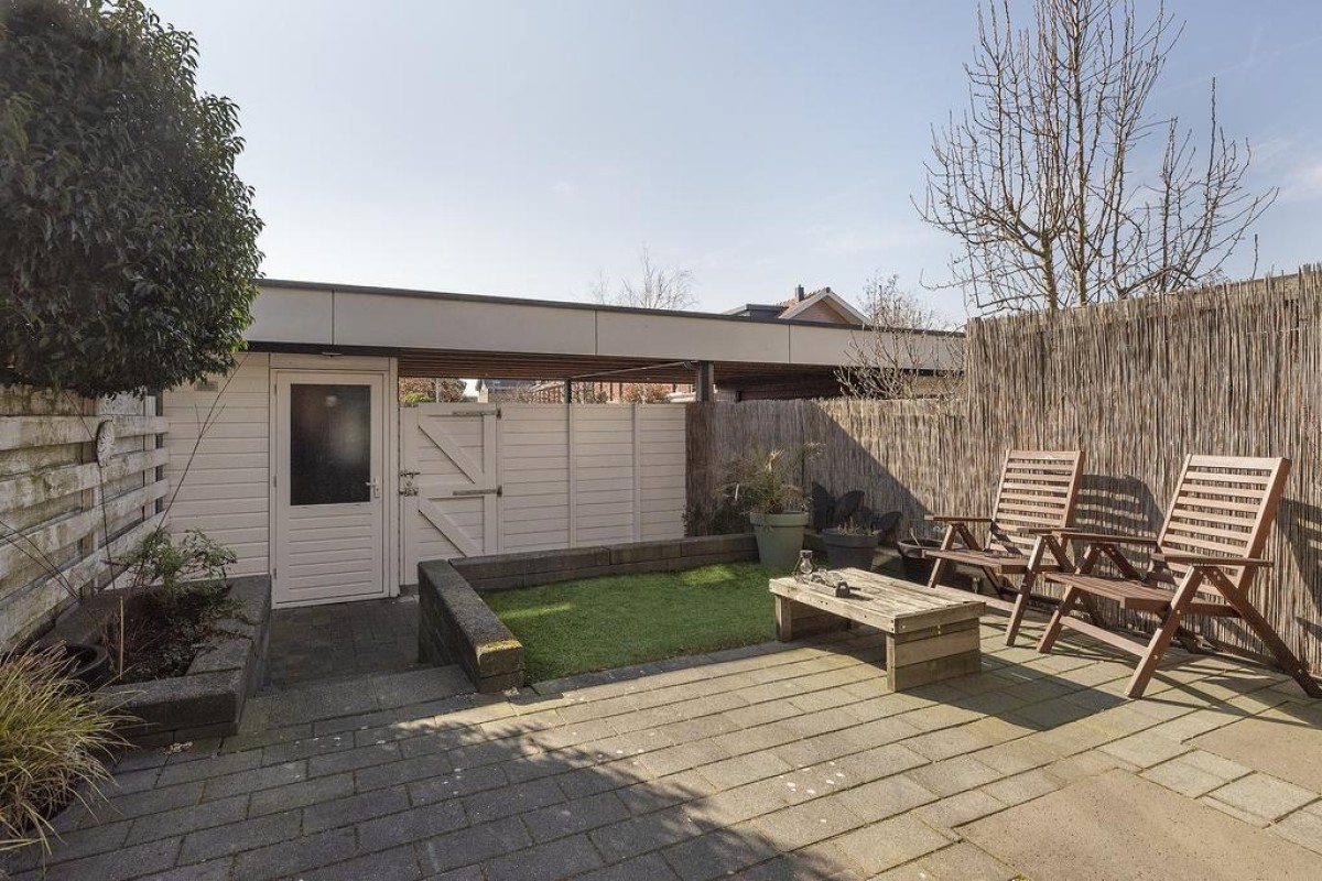 Tuin: de achtertuin is gelegen op het zuidwesten en beschikt over een terras, een houten berging en een carport.