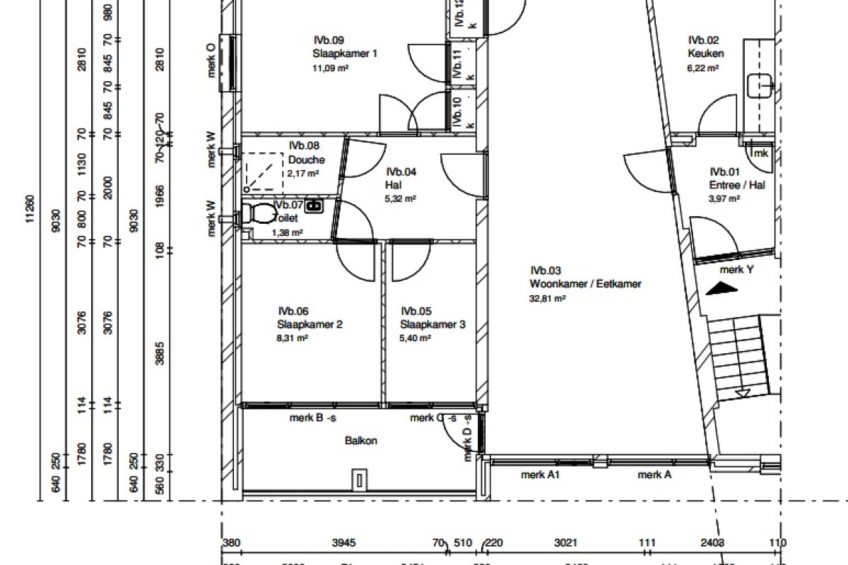 Vanuit de woonkamer is er een tussenhal bereikbaar met toegang tot de 3 slaapkamers (11, 8 en 5m2), separaat toilet en de badkamer. De grote slaapkamer aan de achterzijde beschikt over praktische inbouwkasten. De andere slaapkamers zijn gelegen aan de voorzijde van het appartement. De badkamer is voorzien van een douchegelegenheid en een wastafel.