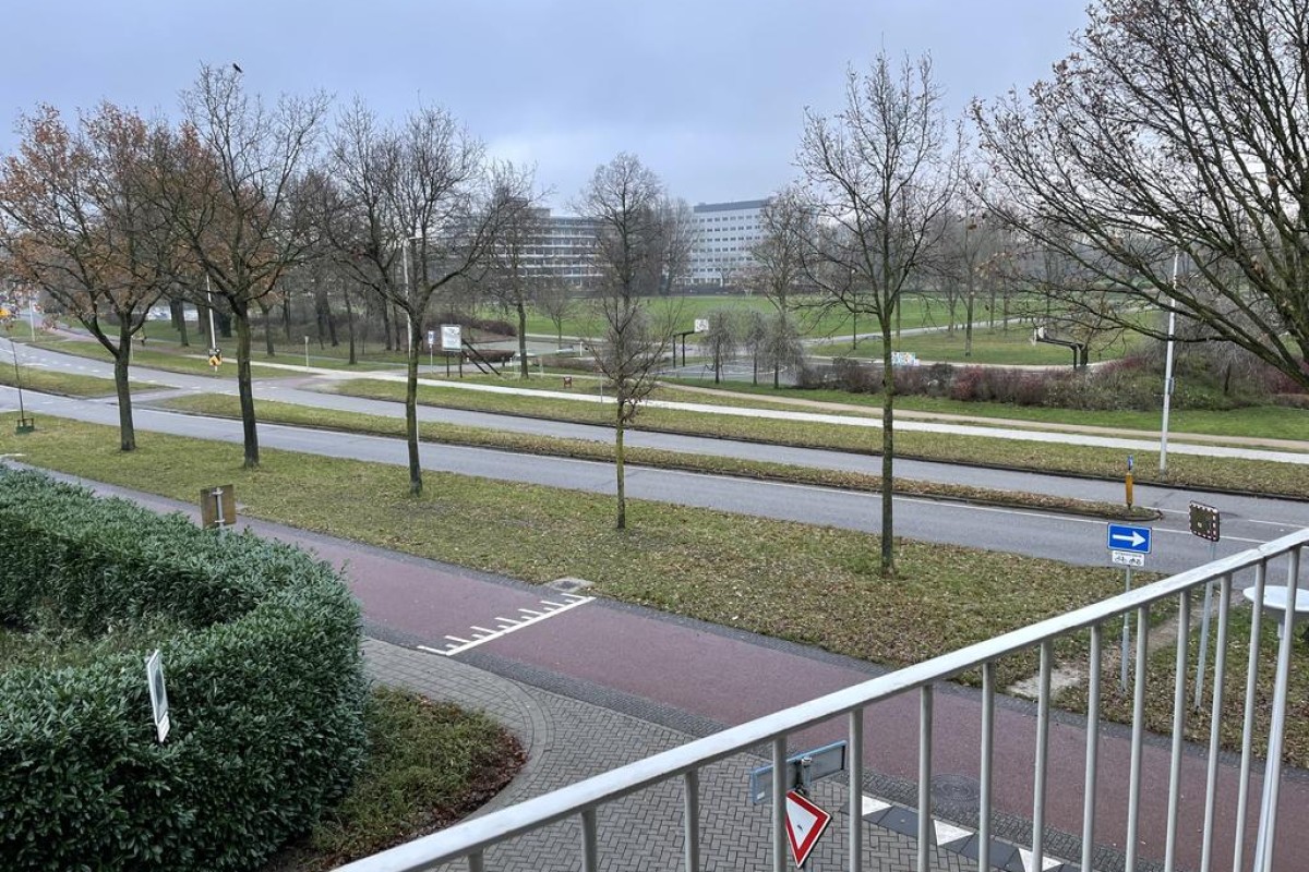 Lees verderDe royale woonkamer is heerlijk licht door de grote raampartijen en heeft een fantastisch uitzicht over het park. Vanuit de woonkamer is het balkon aan de voorzijde bereikbaar.