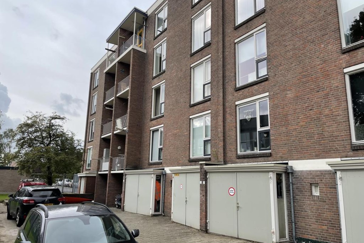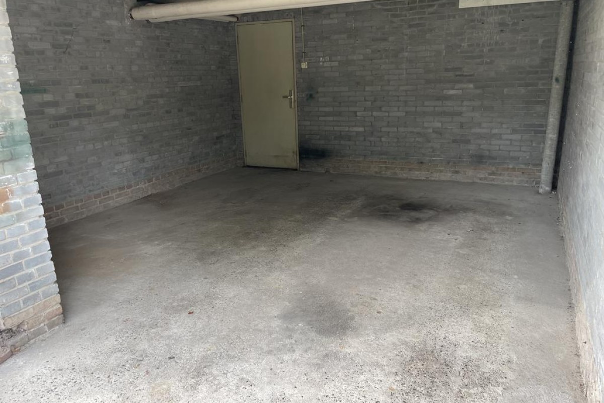 Nette brede inpandige garage met houten deuren gelegen onder het appartementencomplex aan de Van Cuylenburchstraat/Ten Oeverstraat Ideaal voor stalling van huisraad, motor, fiets of boot. Bijdrage VVE circa € 25.60 per maand. De garageboxen zijn bereikbaar via de achterzijde van het complex bereikbaar via de Ten Oeverstraat.