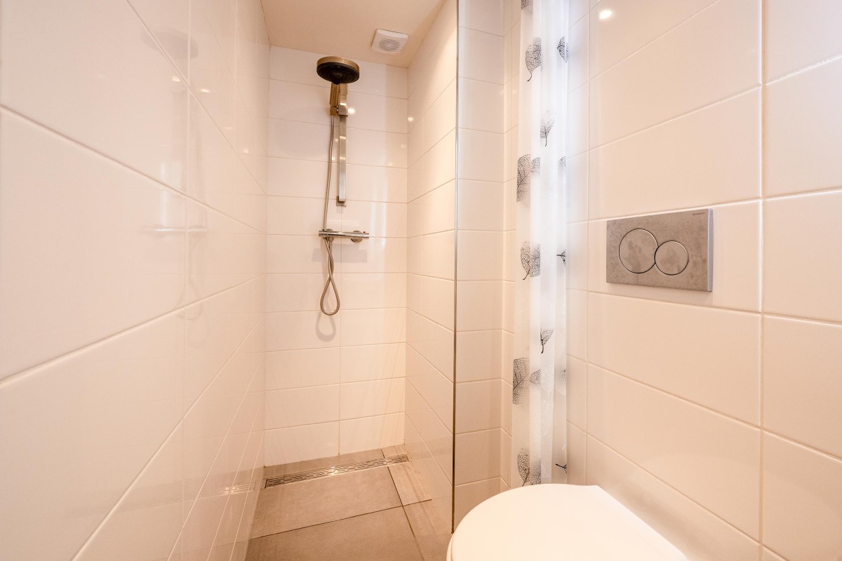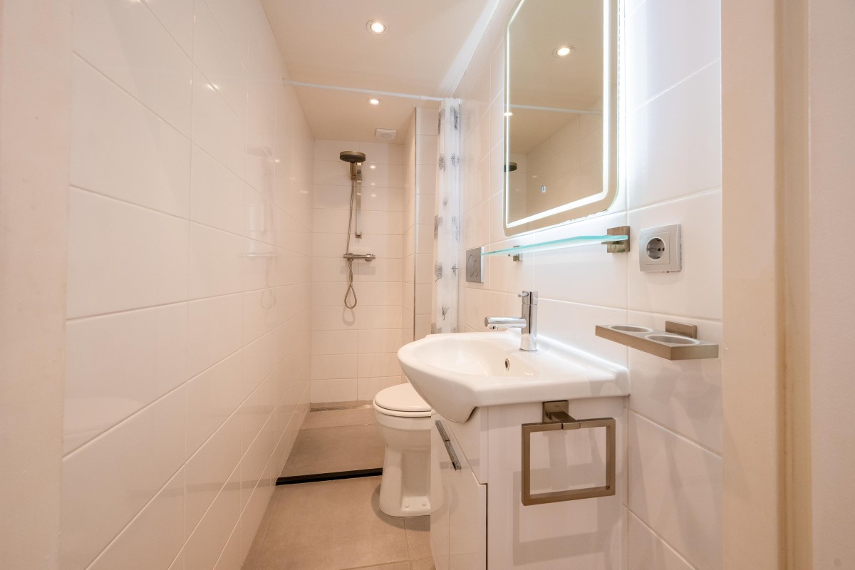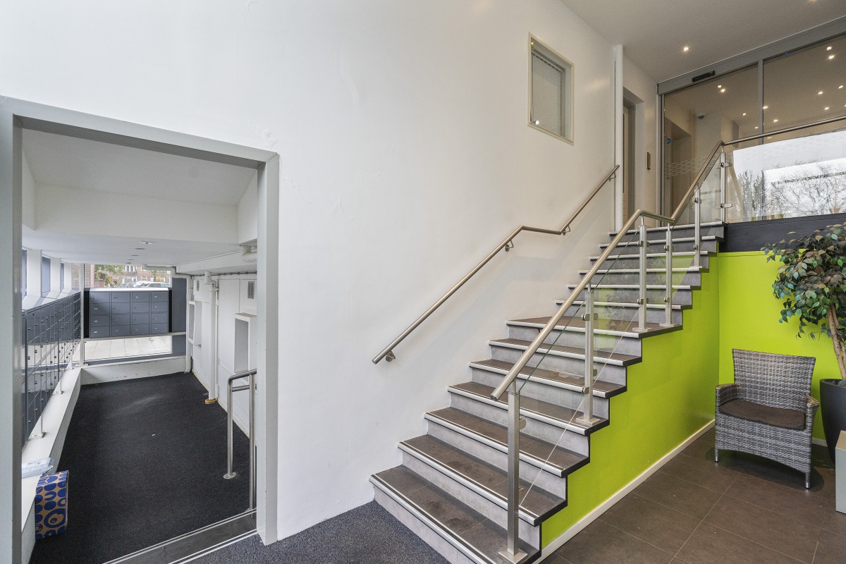 Vernieuwde, afgesloten entree met lift, ruim trappenhuis, lift. De lift hebt je niet nodig om naar het appartement te gaan, omdat de woning op de eerste verdieping ligt.