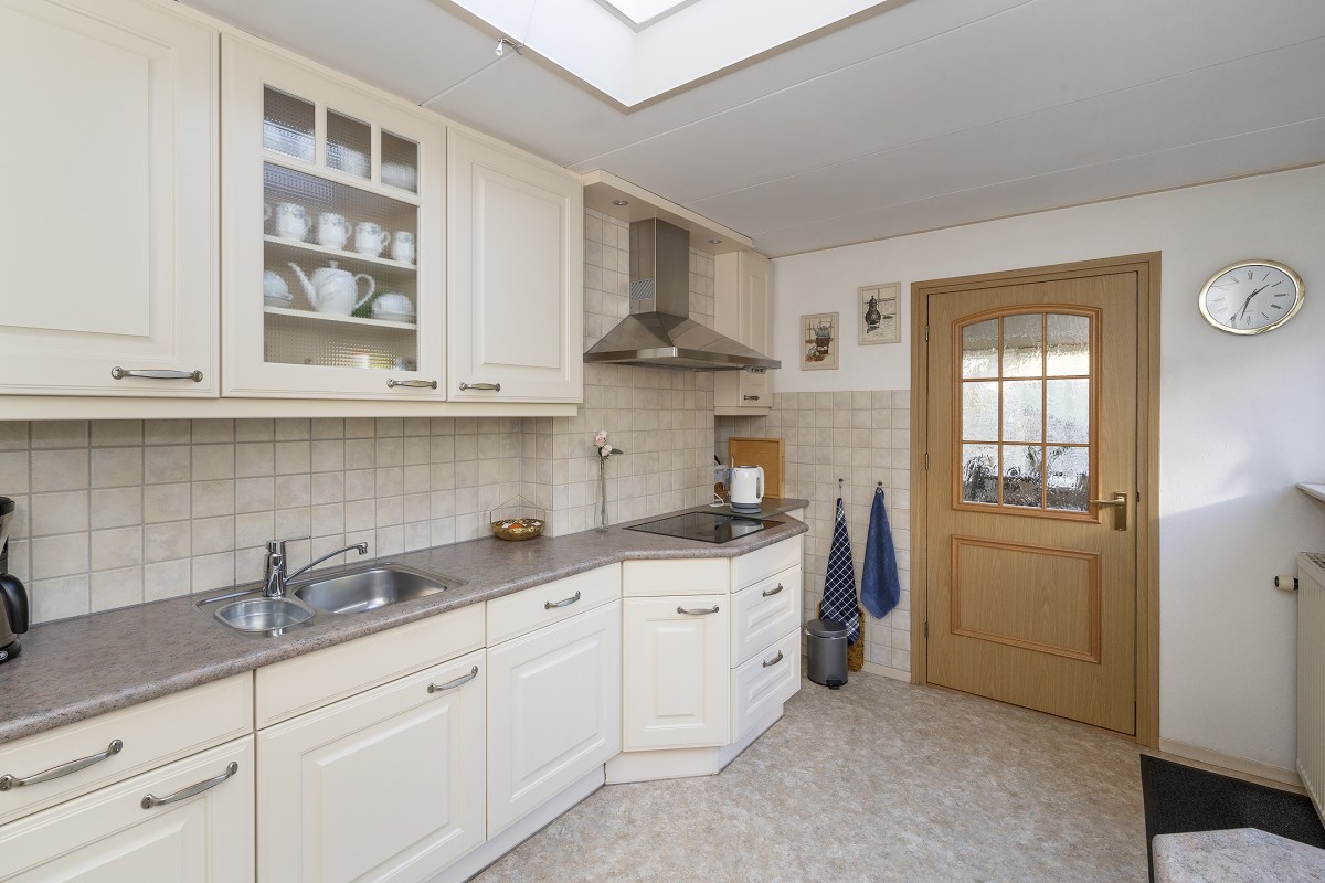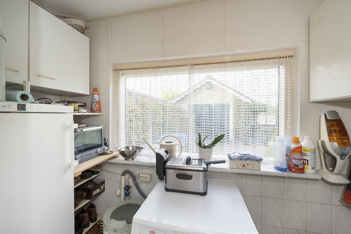 Lees verderAchter de keuken treft u een bijkeuken met wasmachineaansluiting en zelfs een behoorlijke kelder van ca 45 m2 en 1.80 m hoog.