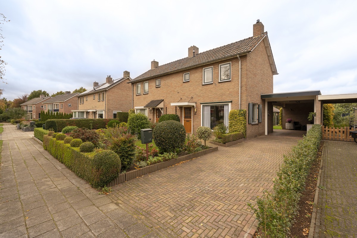 Een leuke twee-onder-één kap woning met een eigen oprit, verhoogde carport en achterin de tuin een vrijstaande stenen garage. De woning is gebouwd in 1964 en is gelegen op een ruime kavel van 434 m² en geen bebouwing aan de achterzijde, wat een optimale privacy geeft.