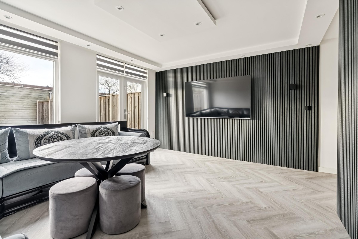 Je komt binnen in de hal met toegang tot het toilet, de trap naar de verdieping en de woonkamer. De woonkamer ligt aan de achterzijde van de woning en heeft prettig lichtinval. Vanuit hier heb je direct contact met de achtertuin.