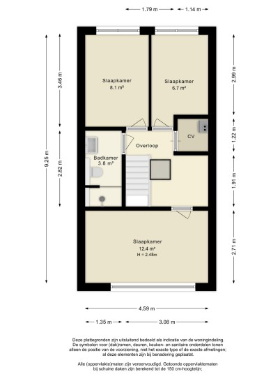 Op de eerste verdieping kom je uit op de overloop met toegang tot drie slaapkamers. De slaapkamers zijn praktisch van formaat en goed in te delen.