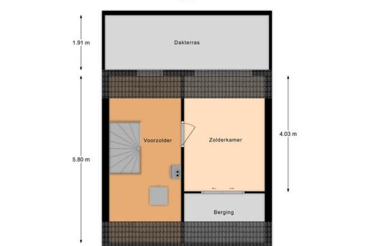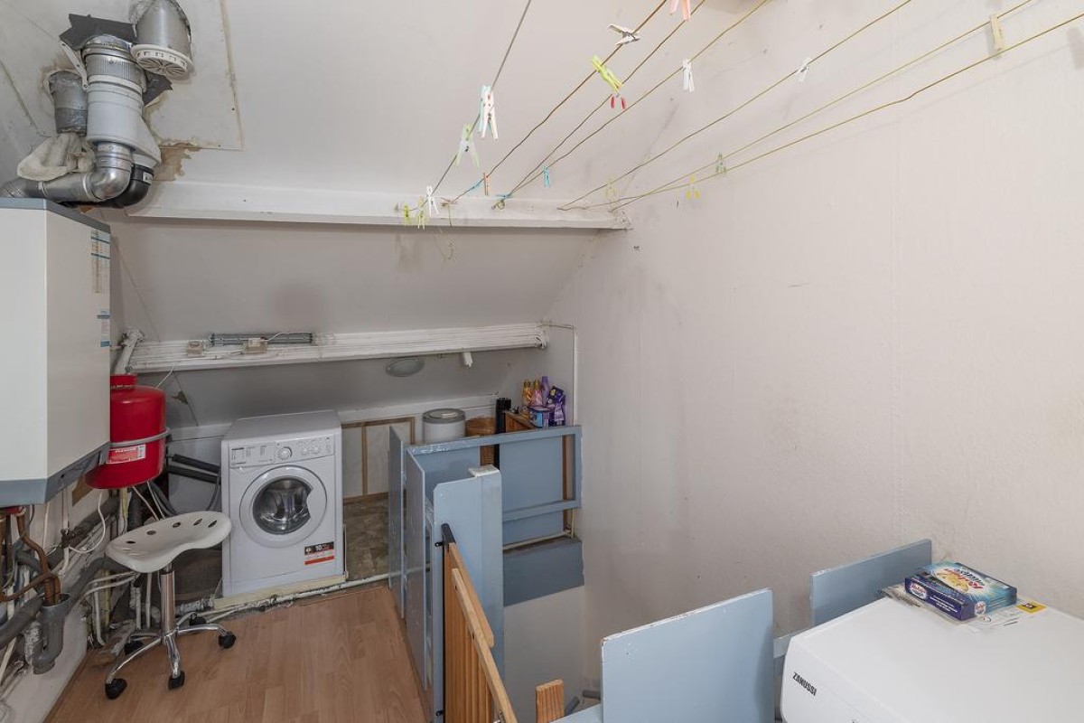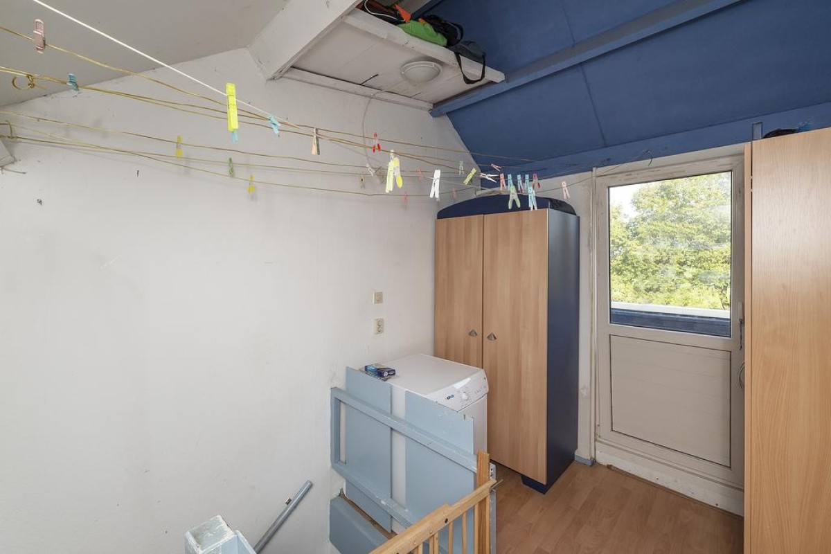 Zolderverdieping met overloop. De zolderverdieping is tevens voorzien van een laminaatvoer. Op de overloop bevindt zich de CV-ketel en de aansluiting voor een wasmachine en/of wasdroger. Vanaf de overloop heeft u toegang tot het dakterras. Hier geniet u van het zicht op de prachtige landerijen achter de woning.