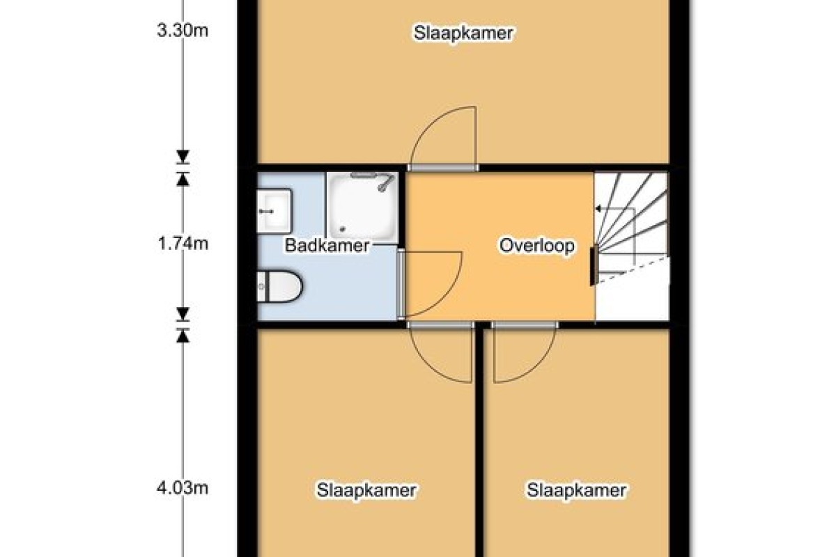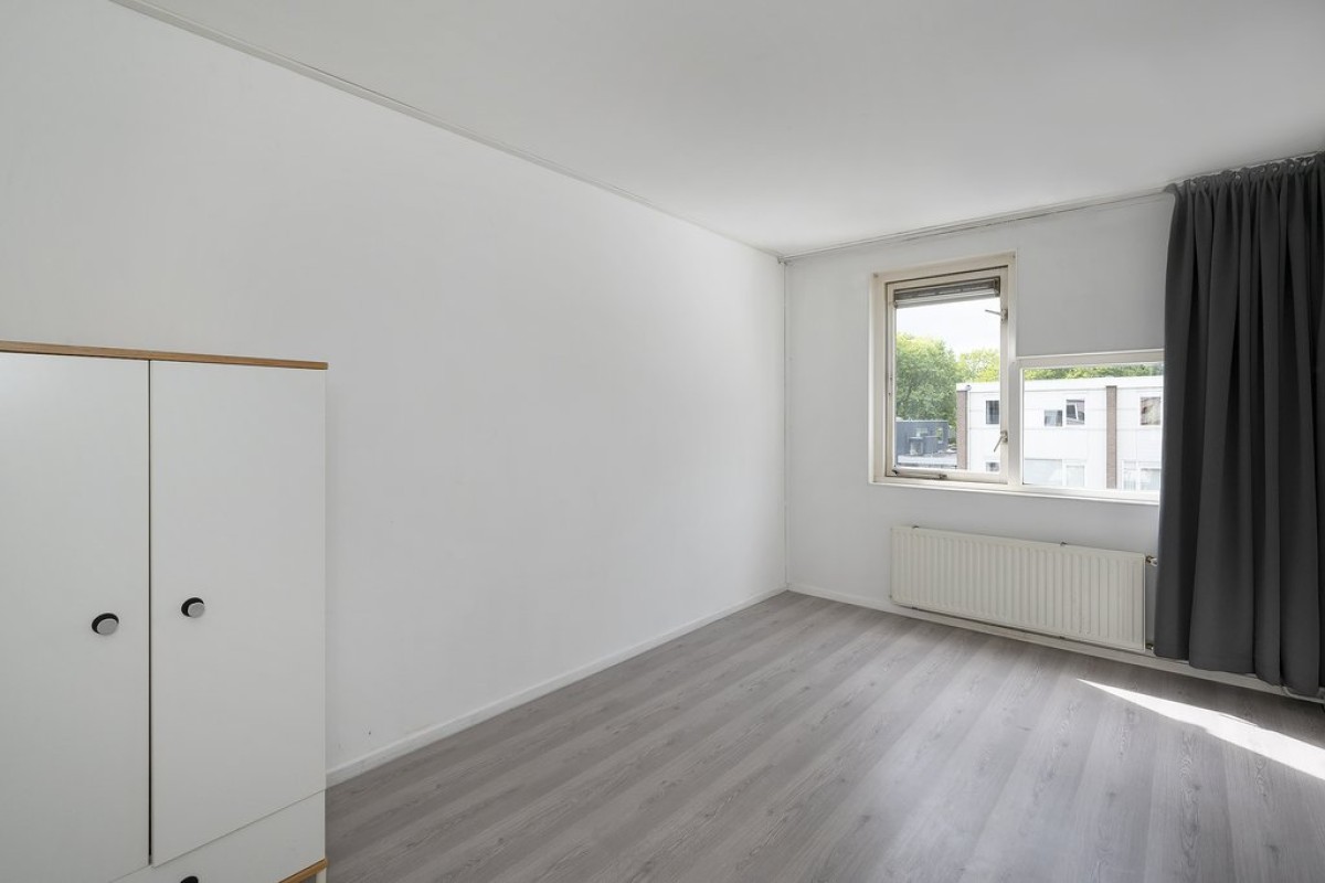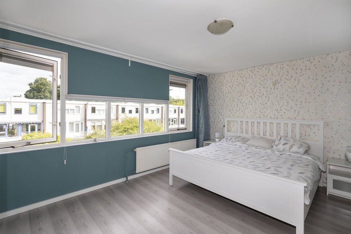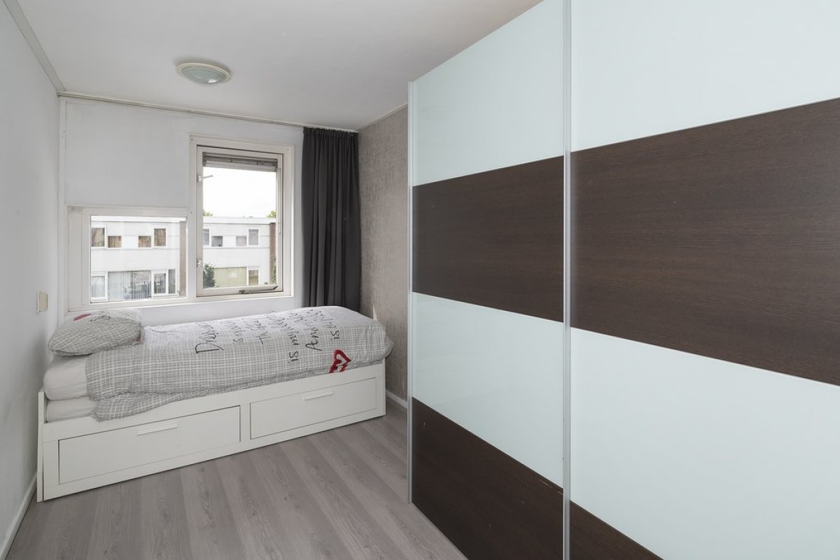 Lees verderDe slaapkamer is gelegen aan de achterzijde van de woning en is eventueel ook in te richten als kantoor- of hobbyruimte.