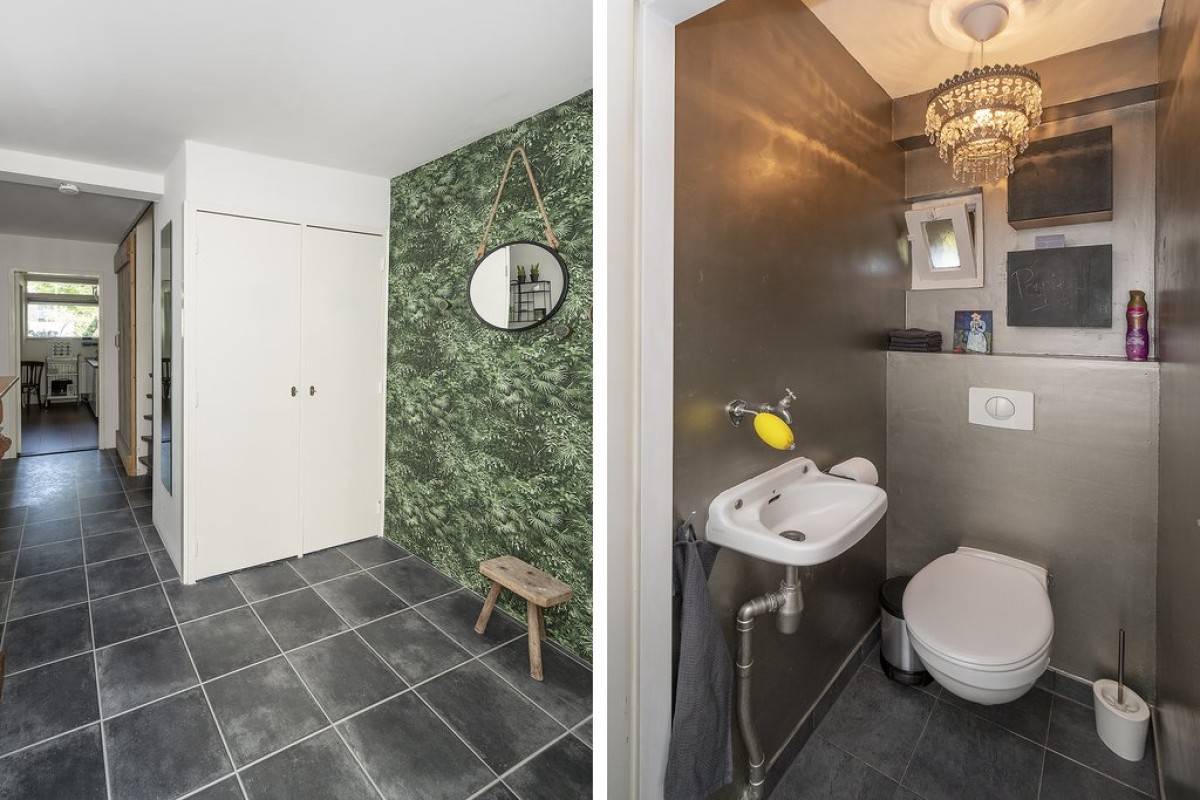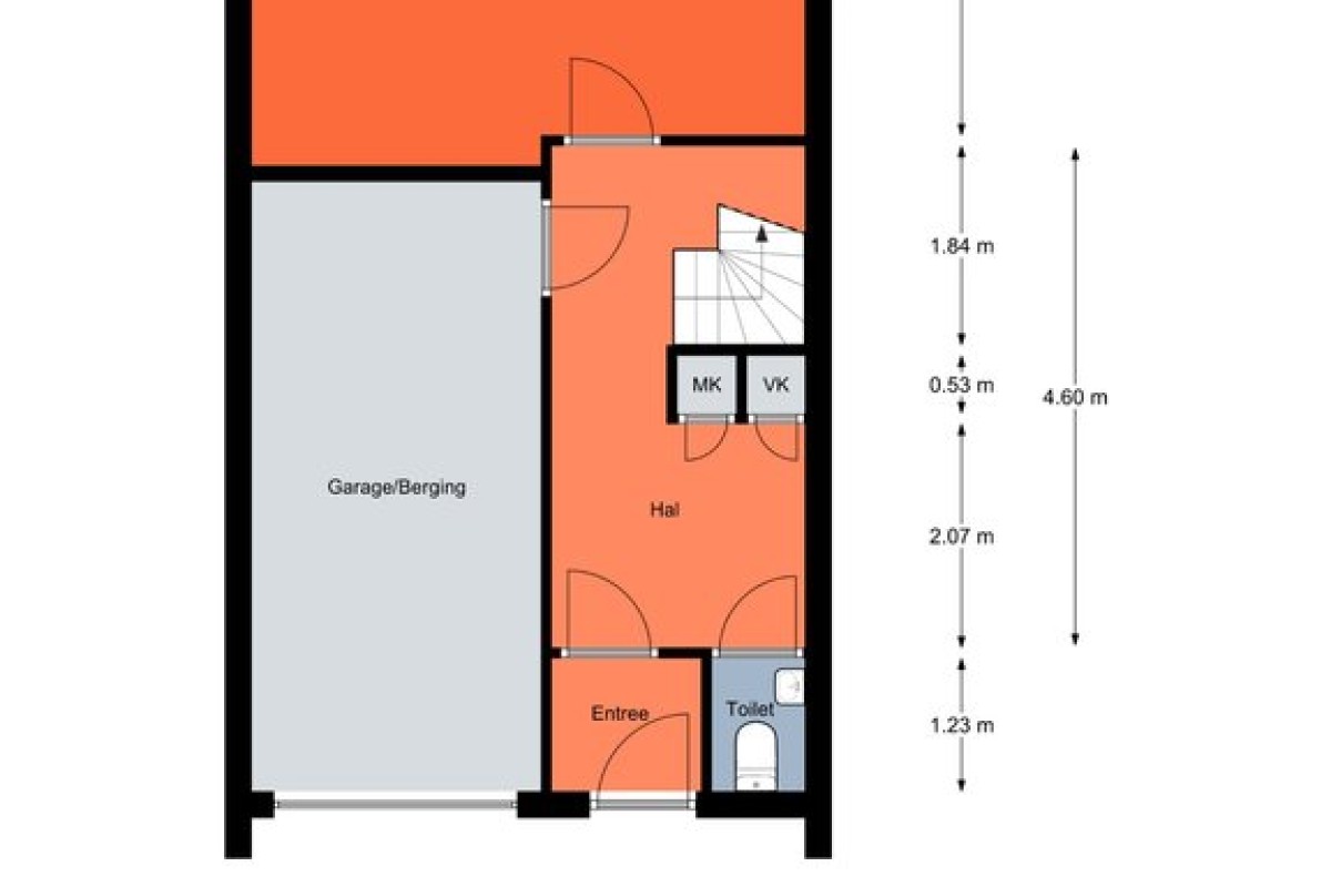 Entree/hal met toilet en trapopgang naar de woonverdieping. Toegang naar de grote inpandige garage. Tevens treft u hier de wasmachineopstelling en de CV-ketel. Op de begane grond bevindt zich ook de praktijkruimte.