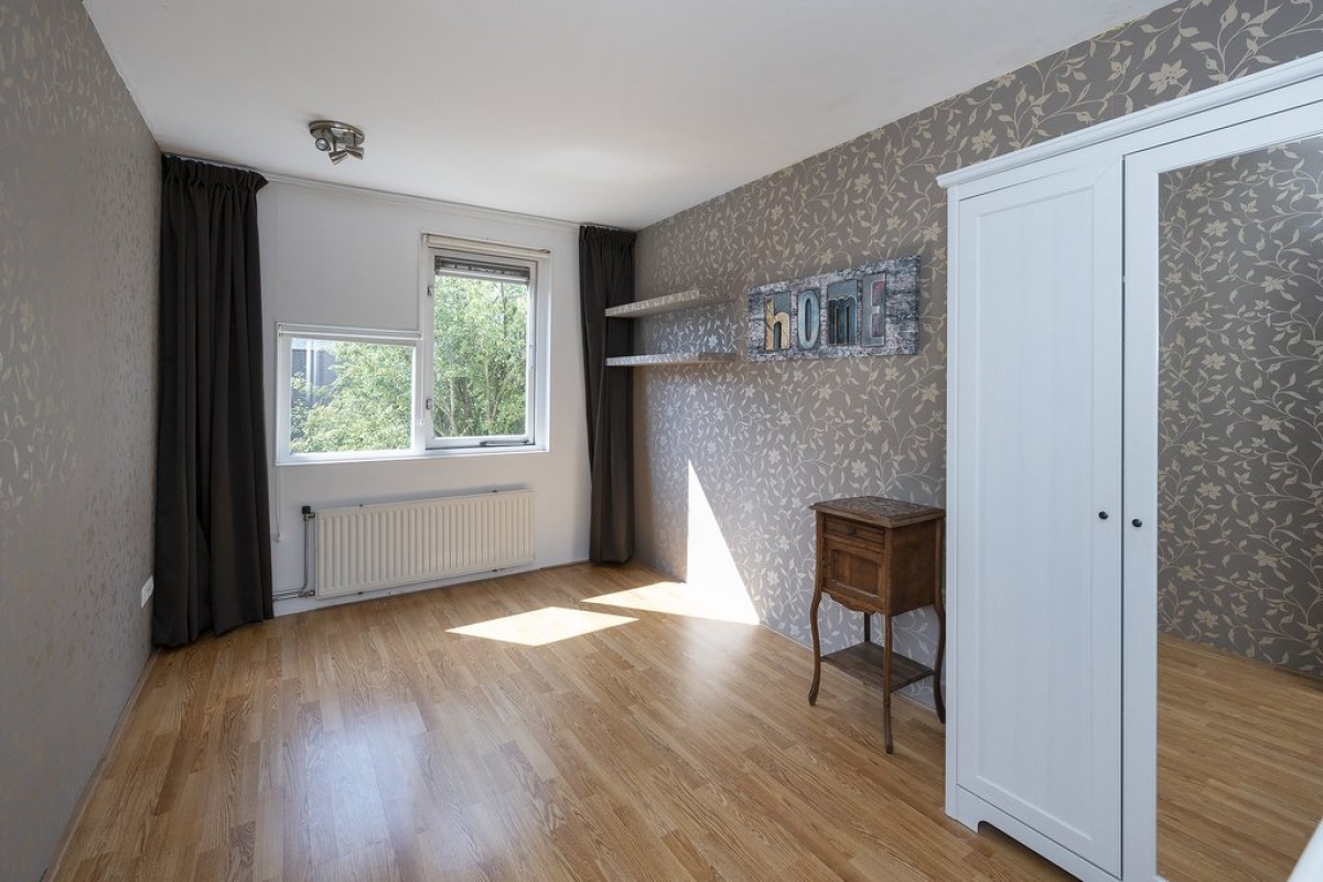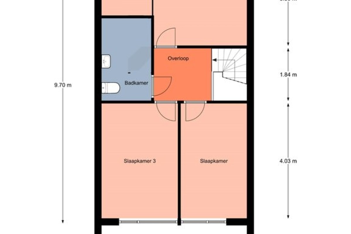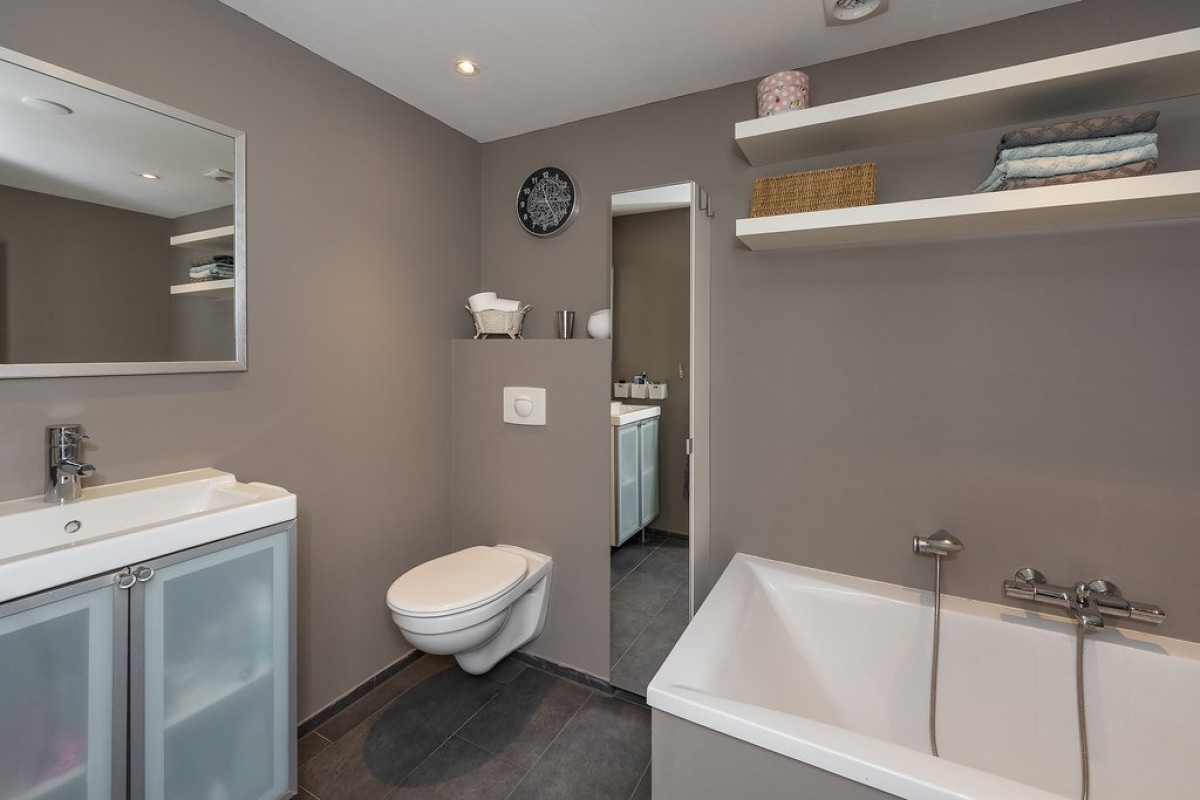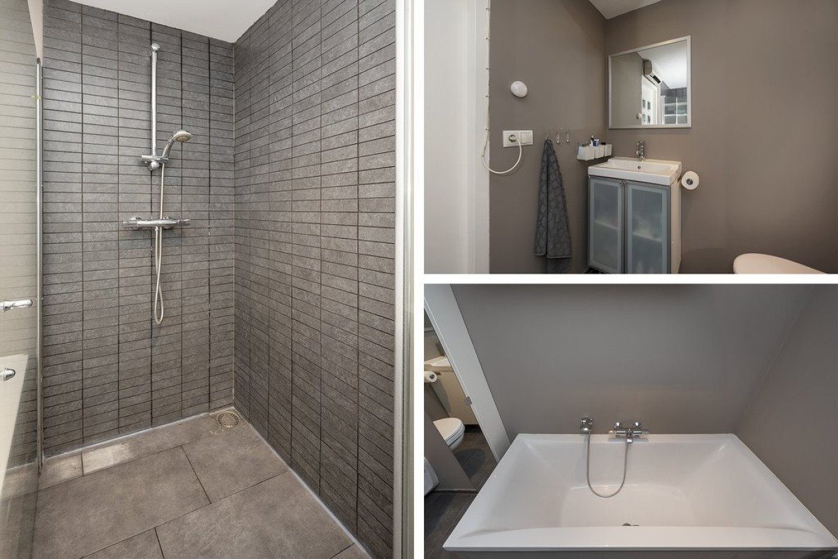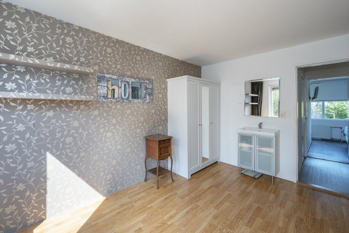 Overloop met totaal drie slaapkamers. De ouderslaapkamer bevindt zich aan de achterzijde van de woning. Deze is fraai afgewerkt met een riante inloopkast. De vergrote badkamer is zeer luxe ingericht en voorzien alle voorzieningen die u graag wilt aantreffen in de badkamer